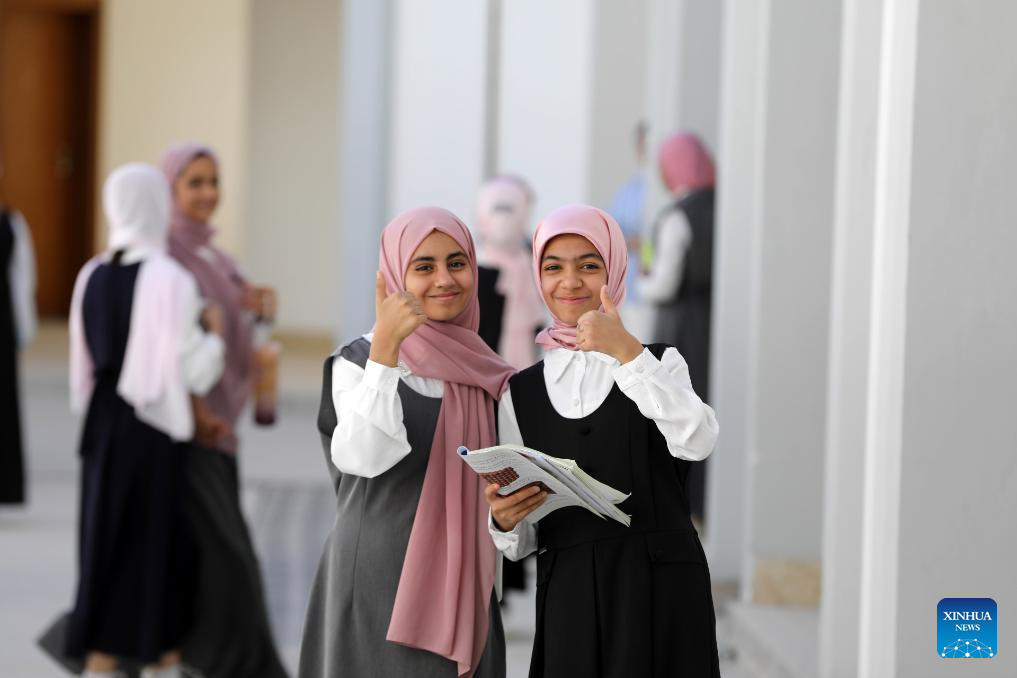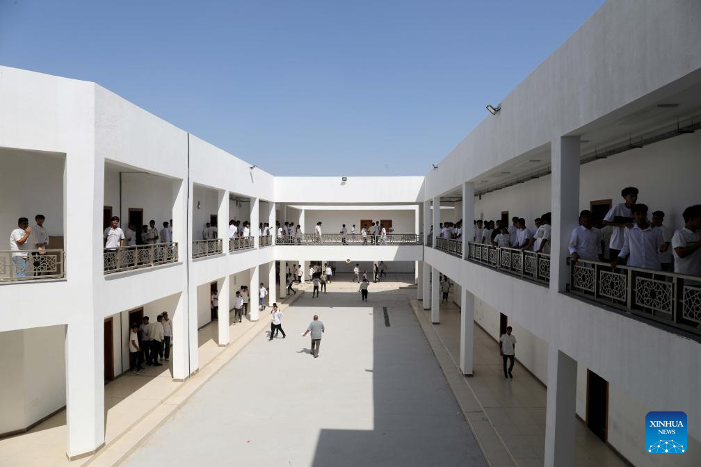 Students are seen at the Al-Khudar High School constructed by the Power Construction Corporation of China (PowerChina) in Al-Muthanna Province, Iraq, on Oct. 8, 2024. (Xinhua/Khalil Dawood)
