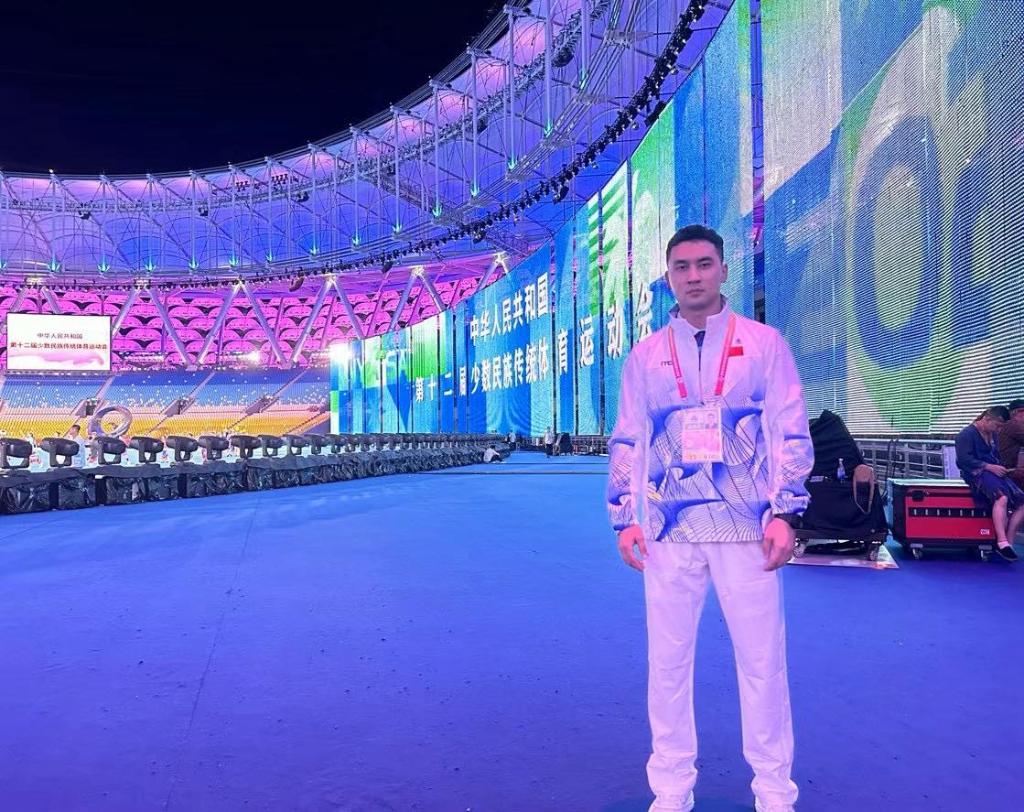 Kazakh youth Tangbol Tursunhali, who bore flag for Jiangsu Province's delegation at the opening ceremony of China's 12th National Traditional Games of Ethnic Minorities in Sanya, has been determined to promote Kazakh embroidery and inspire more people to engage with this rich cultural tradition.