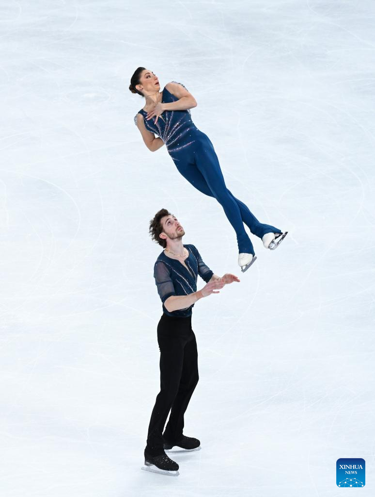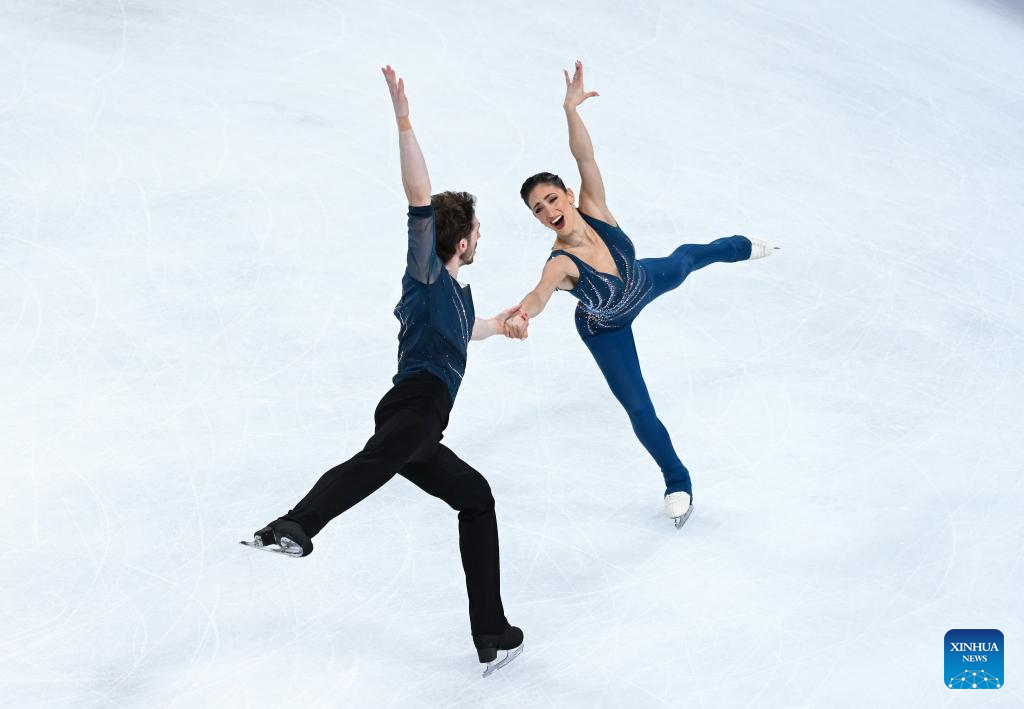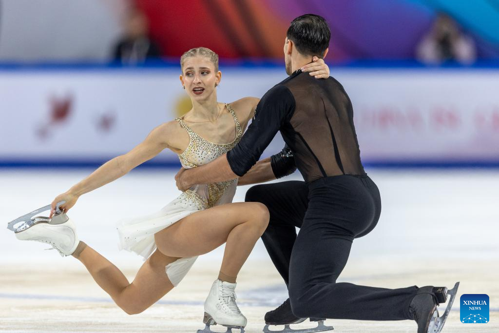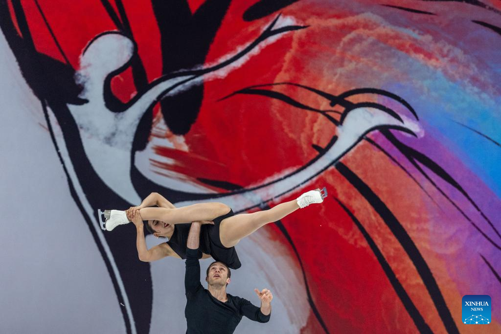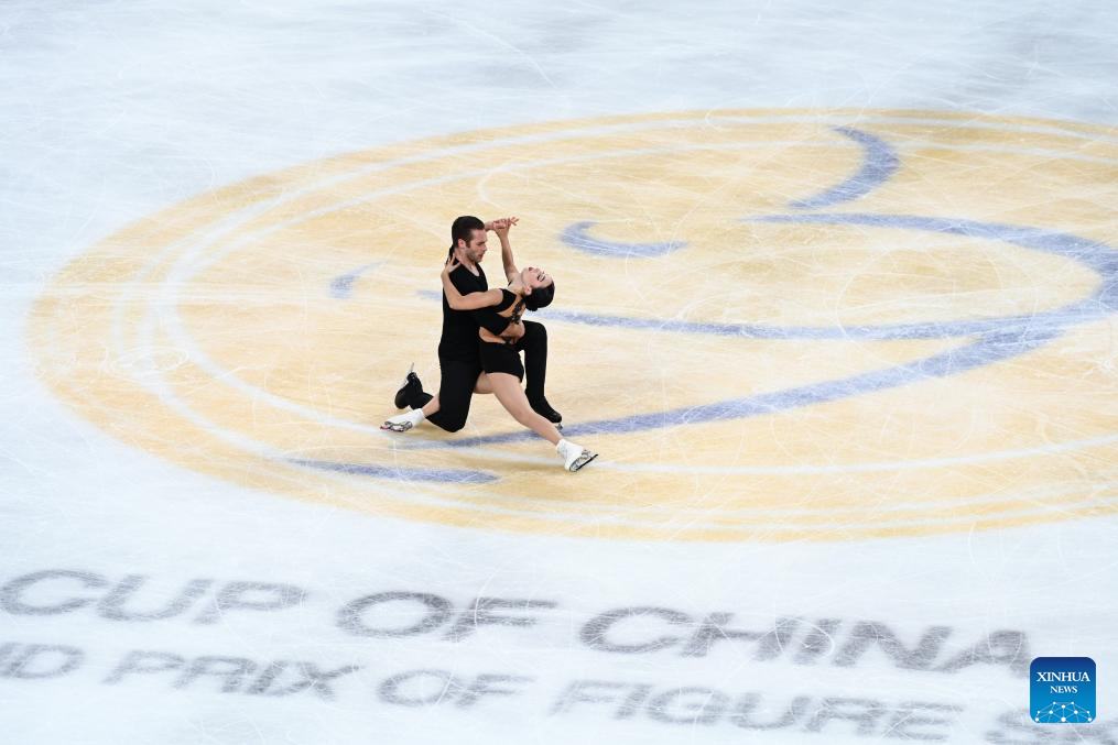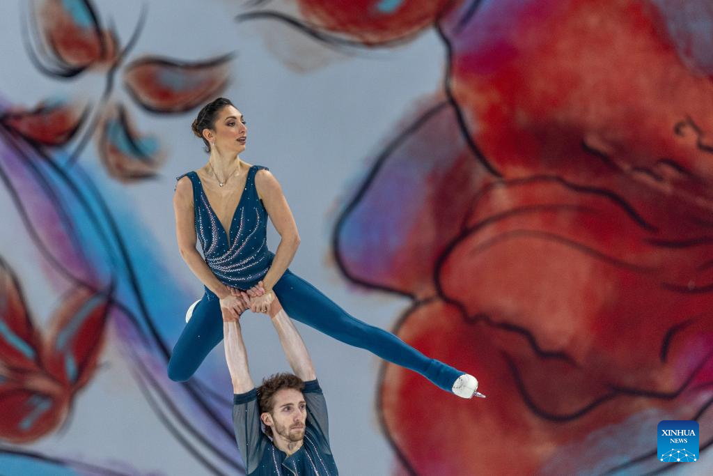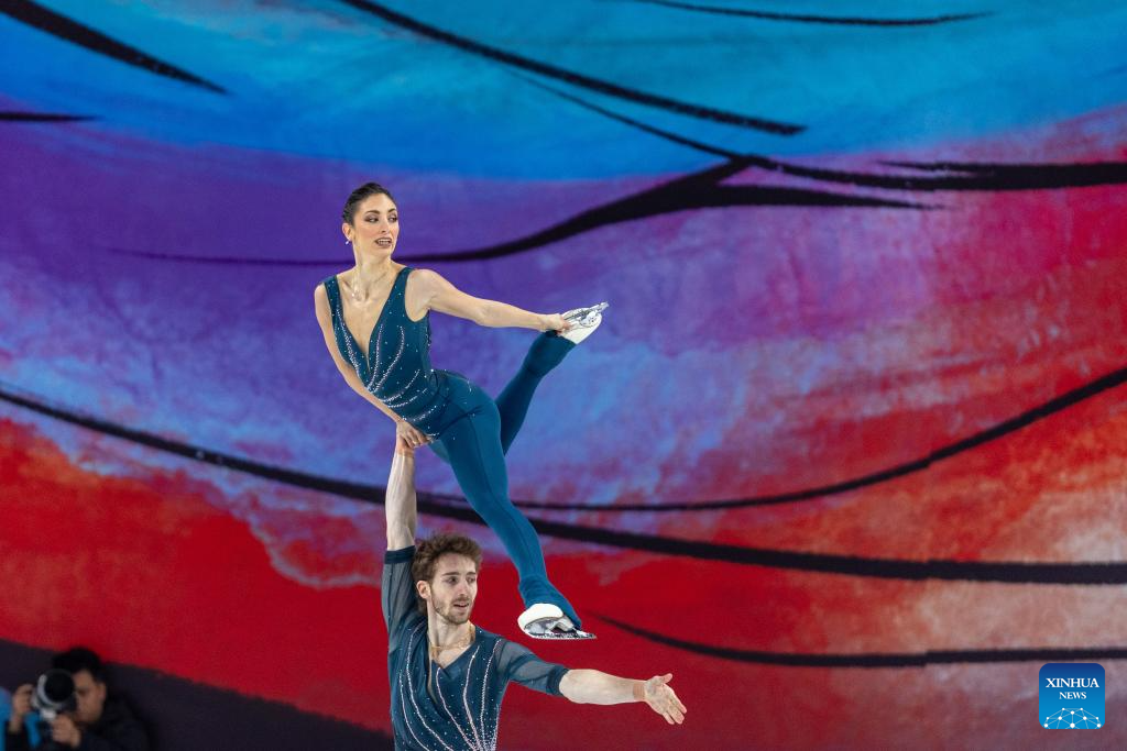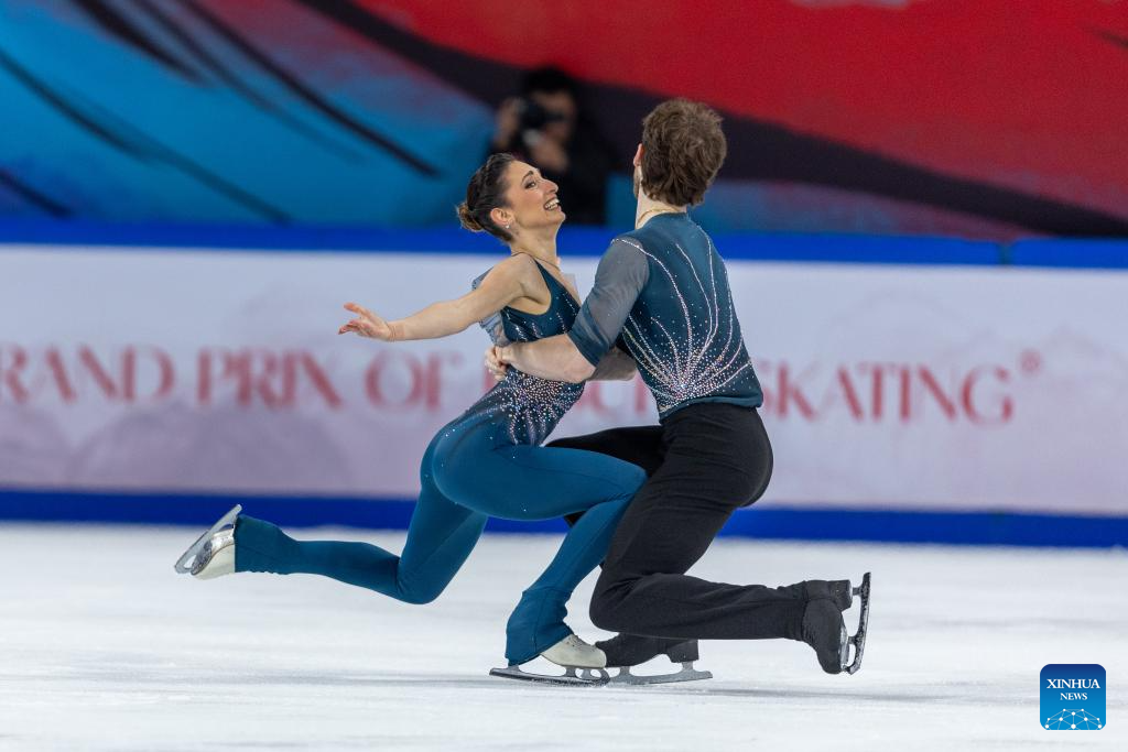 Sara Conti (L)/Niccolo Macii of Italy perform during the pair skating free skating at the Cup of China ISU Grand Prix of Figure Skating 2024 in southwest China's Chongqing Municipality, Nov. 23, 2024. (Xinhua/Huang Wei)