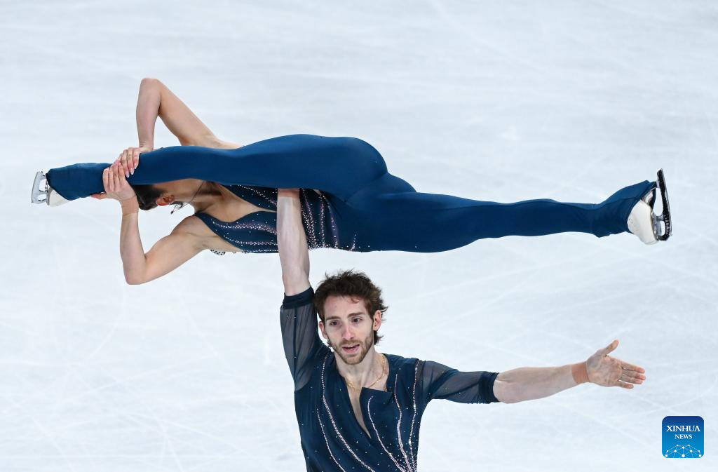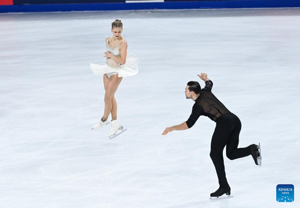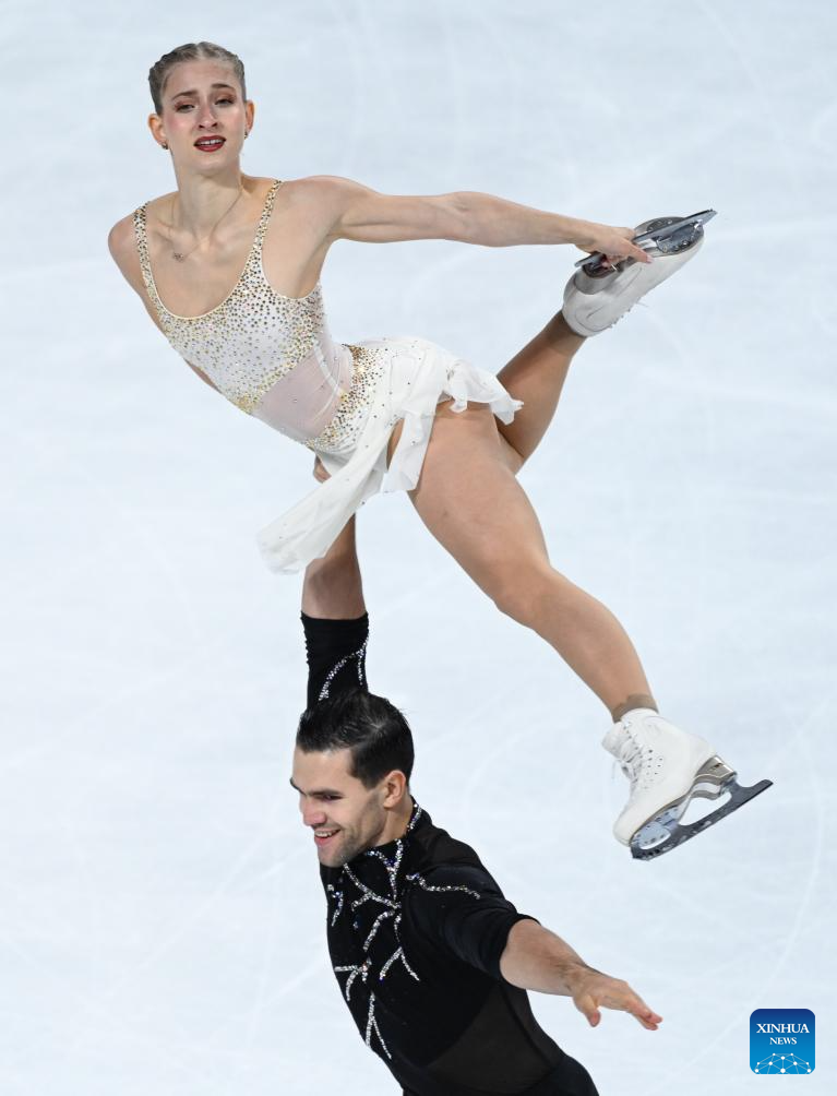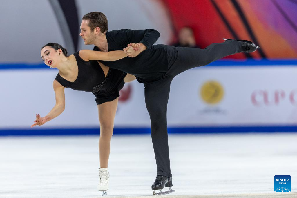 Lia Pereira (L)/Trennt Michaud of Canada perform during the pair skating free skating at the Cup of China ISU Grand Prix of Figure Skating 2024 in southwest China's Chongqing Municipality, Nov. 23, 2024. (Xinhua/Huang Wei)