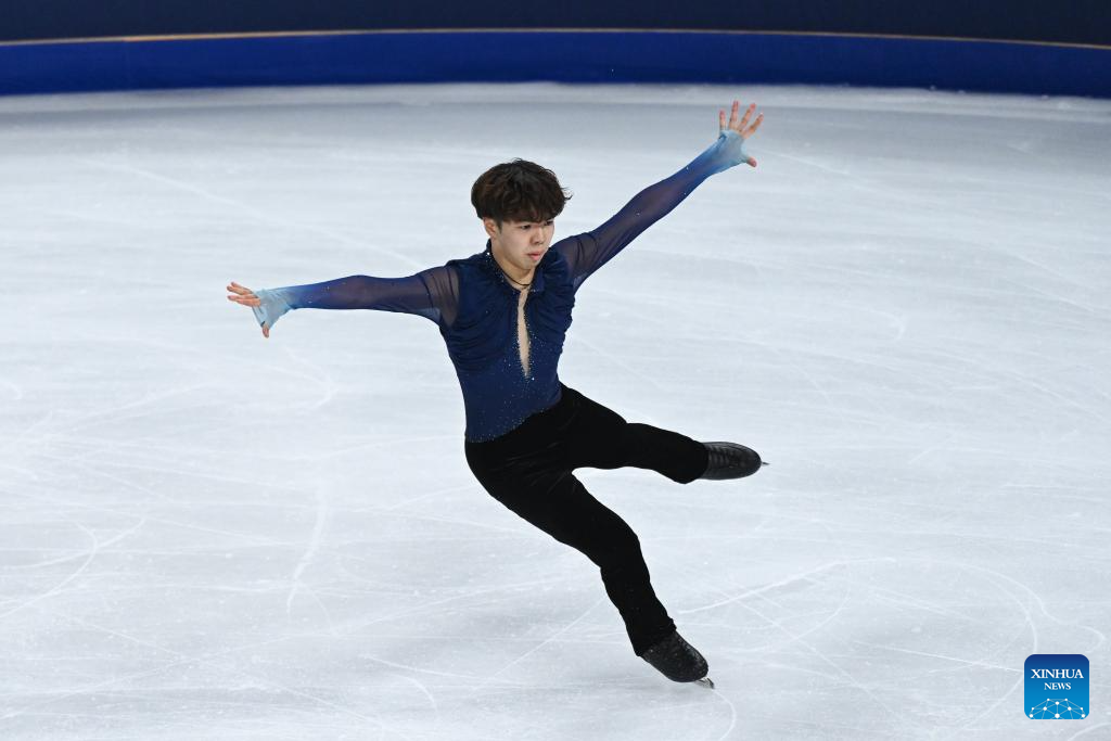 Sato Shun of Japan performs during the men's free skating at the Cup of China ISU Grand Prix of Figure Skating 2024 in southwest China's Chongqing Municipality, Nov. 23, 2024. (Xinhua/Zhang Ziyu)