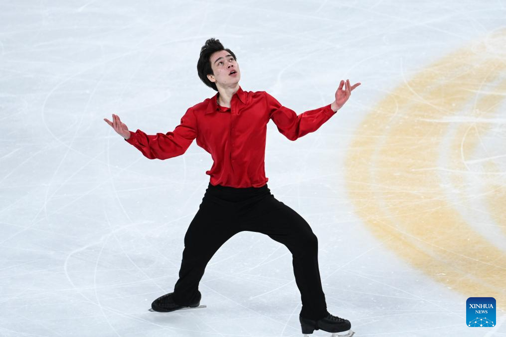 Mikhail Shaidorov of Kazakhstan performs during the men's free skating at the Cup of China ISU Grand Prix of Figure Skating 2024 in southwest China's Chongqing Municipality, Nov. 23, 2024. (Xinhua/Huang Wei)