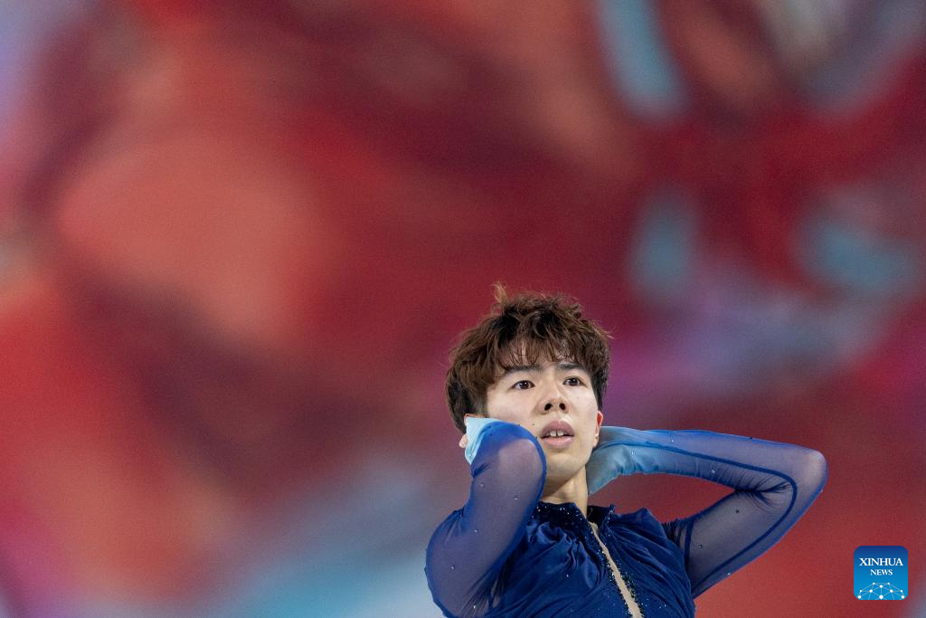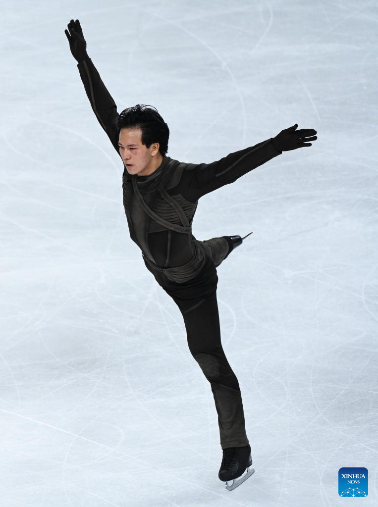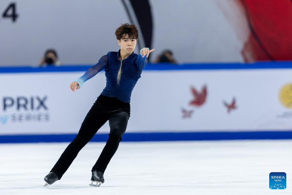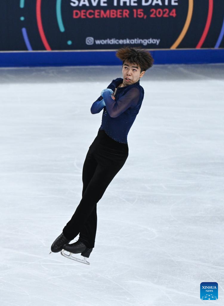 Sato Shun of Japan performs during the men's free skating at the Cup of China ISU Grand Prix of Figure Skating 2024 in southwest China's Chongqing Municipality, Nov. 23, 2024. (Xinhua/Huang Wei)