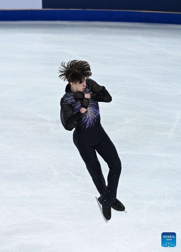 Mikhail Shaidorov of Kazakhstan performs during the men's free skating at the Cup of China ISU Grand Prix of Figure Skating 2024 in southwest China's Chongqing Municipality, Nov. 23, 2024. (Xinhua/Zhang Ziyu)