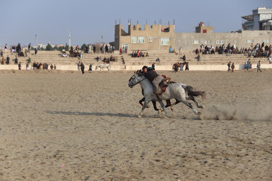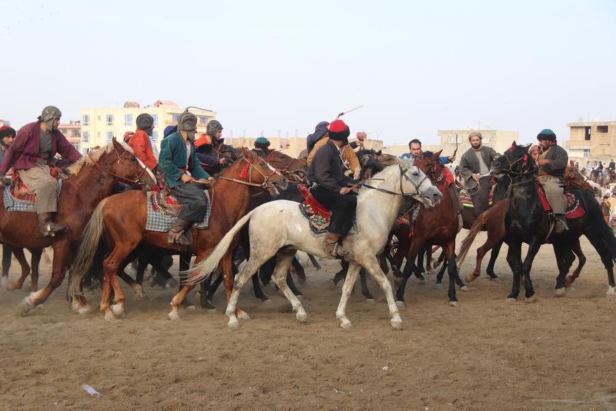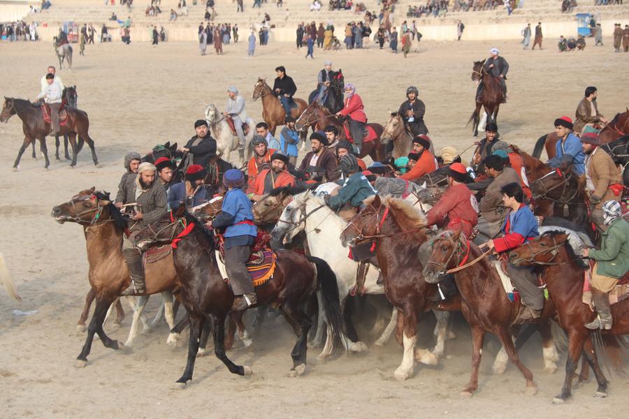Afghan horse riders compete in a Buzkashi game in Balkh province, Afghanistan, Nov. 22, 2024.(M Fardin Nawrozi/Xinhua)Afghan horse riders compete in a Buzkashi game in Balkh province, Afghanistan, Nov. 22, 2024.(M Fardin Nawrozi/Xinhua)Afghan horse riders compete in a Buzkashi game in Balkh province, Afghanistan, Nov. 22, 2024.(M Fardin Nawrozi/Xinhua)Afghan horse riders ready to start a game of Buzkashi, or "goat grabbing," in Balkh province, Afghanistan, Nov. 22, 2024.(M Fardin Nawrozi/Xinhua)This photo taken on Nov. 22, 2024 shows Afghan horse riders compete for a goat in a Buzkashi game in Balkh province, Afghanistan.(M Fardin Nawrozi/Xinhua)■