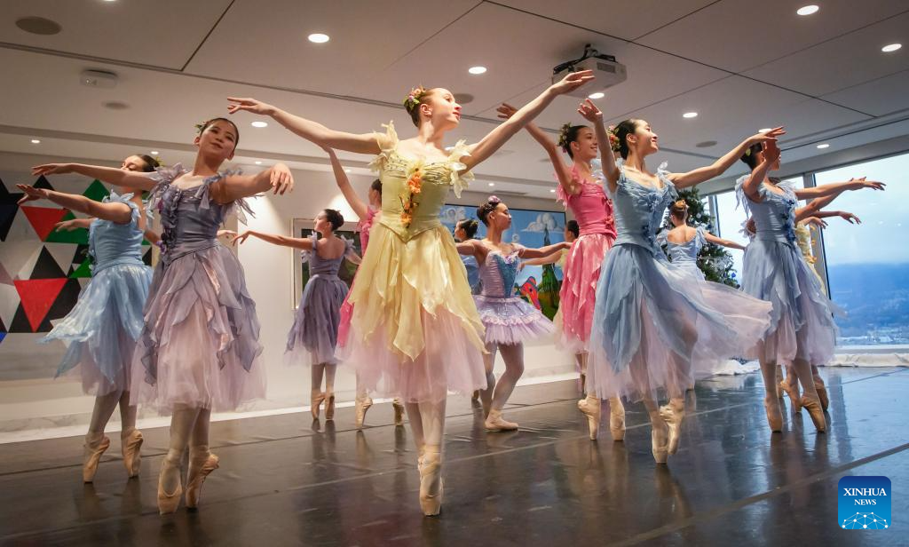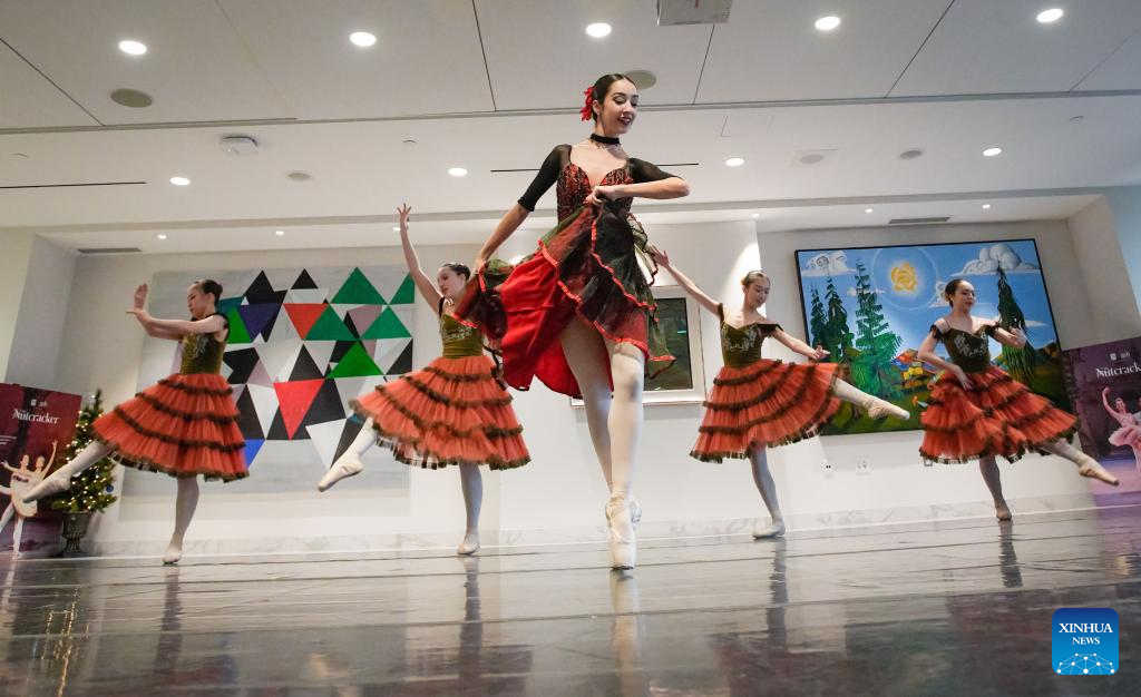 Dancers perform a segment from "The Nutcracker" by Goh Ballet during a media preview event in Vancouver, British Columbia, Canada, Nov. 25, 2024. (Photo by Liang Sen/Xinhua)