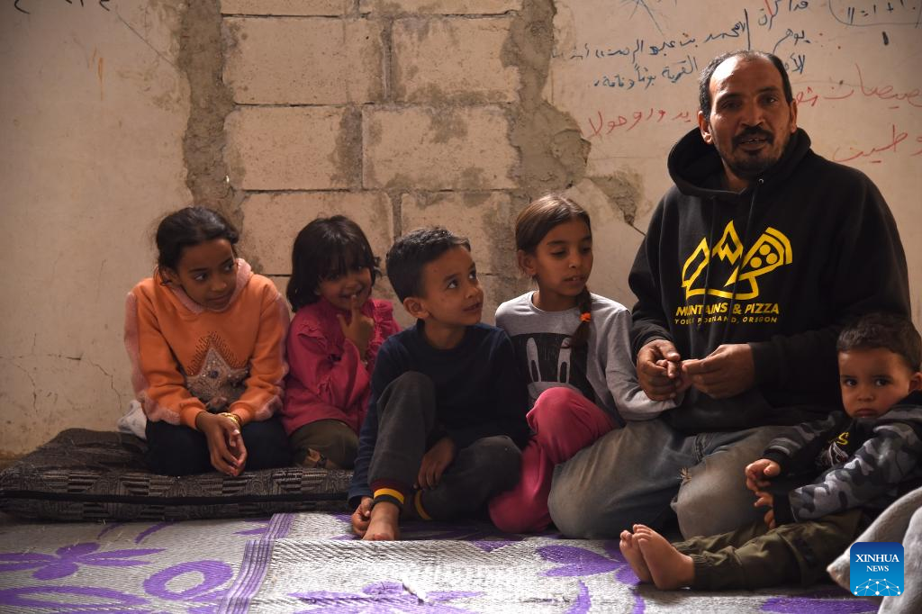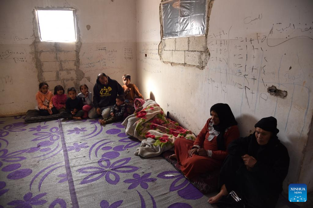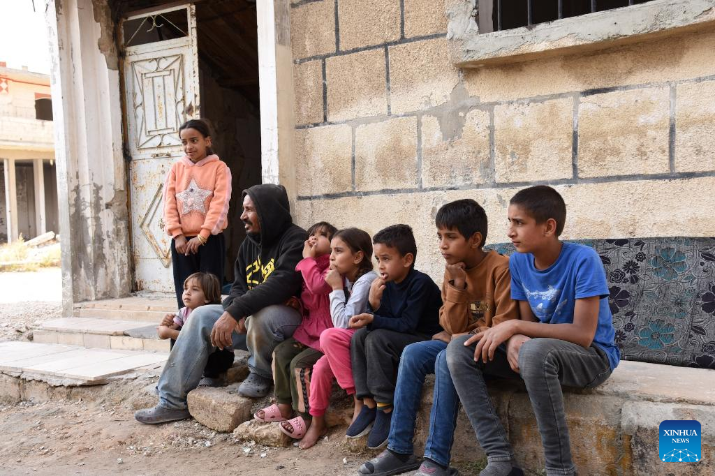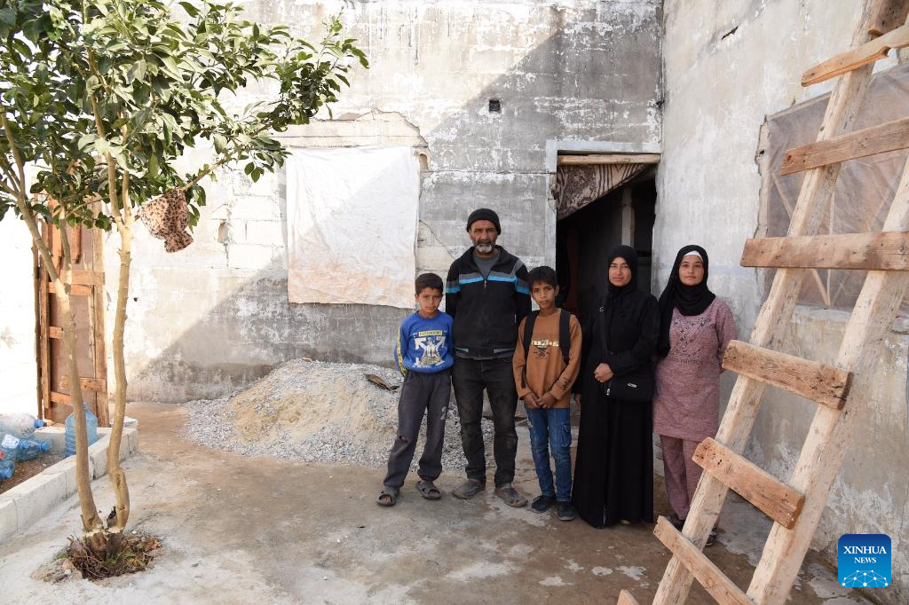 Zakaria Suleiman Alloush (2nd L), who fled Syria with his family in 2013, is seen with his family at his war-damaged apartment in Homs, central Syria, on Nov. 14, 2024. According to UN data, more than 400,000 Syrian refugees had returned from Lebanon to Syria as of Sept. 23. For al-Khalif, Alloush and their fellow Syrian returnees, the path to rebuilding lives in a war-torn homeland remains fraught with obstacles. (Photo by Monsef Memari/Xinhua)