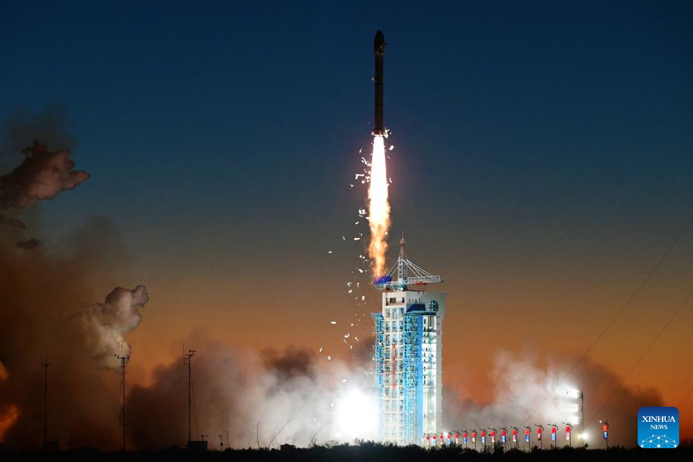 A Long March-2C carrier rocket carrying two satellites blasts off from the Jiuquan Satellite Launch Center in northwest China, Nov. 25, 2024. The rocket blasted off at 7:39 a.m. (Beijing Time) and sent the pair of satellites, Siwei Gaojing-2 03 and Siwei Gaojing-2 04, into the preset orbit. (Photo by Wang Jiangbo/Xinhua)
