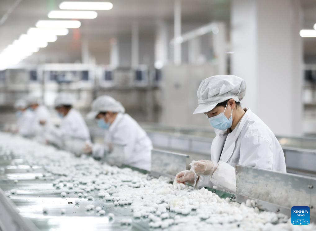 Employees collect cocoons at a production line of Yashilin Changsha (International) Silkworm Silk Intellectual Industry Project in Changsha, central China's Hunan Province, Nov. 24, 2024.
