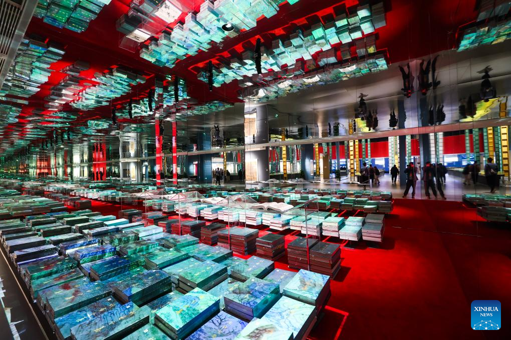 This photo taken on Nov. 25, 2024 shows an exhibition held at a collection hall of Chinese painting series from past dynasties in Yuhang District, Hangzhou City, east China's Zhejiang Province. As the Second Liangzhu Forum kicked off in Hangzhou, the collection hall opened to the public officially on Monday. (Xinhua/Xu Yu)