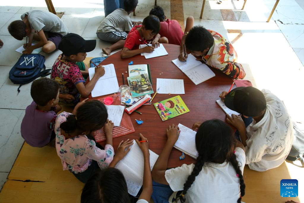Street kids study at a monastery compound in Yangon, Myanmar, Nov. 24, 2024. (Xinhua/Myo Kyaw Soe)