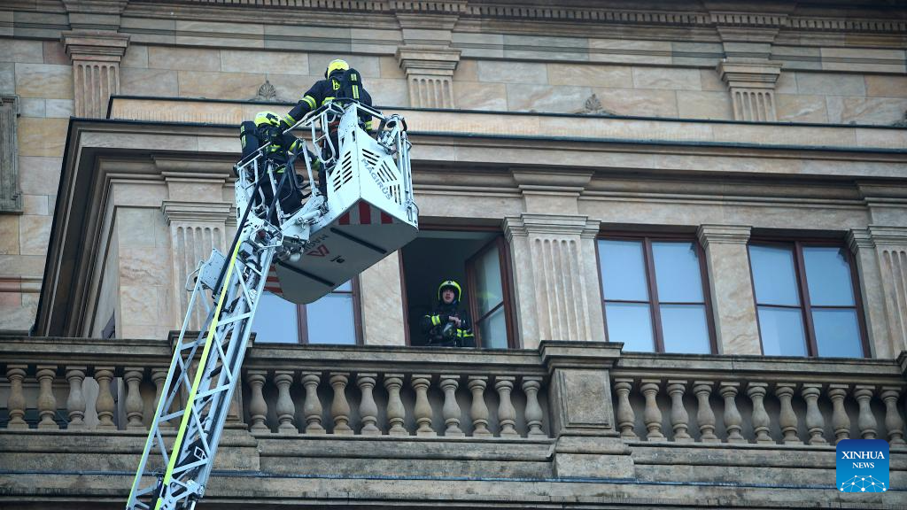 Firefighters respond to a fire at the National Theater in Prague, the Czech Republic, on Nov. 26, 2024. Prague firefighters successfully extinguished a fire that broke out on Tuesday afternoon in the historic National Theater building, a landmark in the Czech capital. (Photo by Dana Kesnerova/Xinhua)