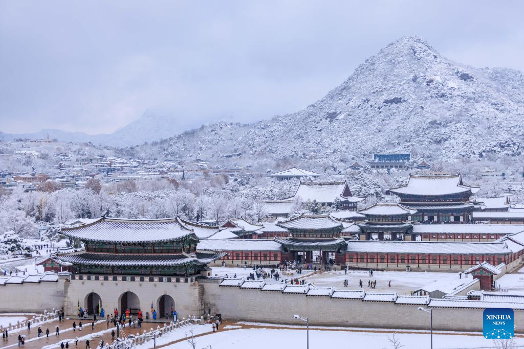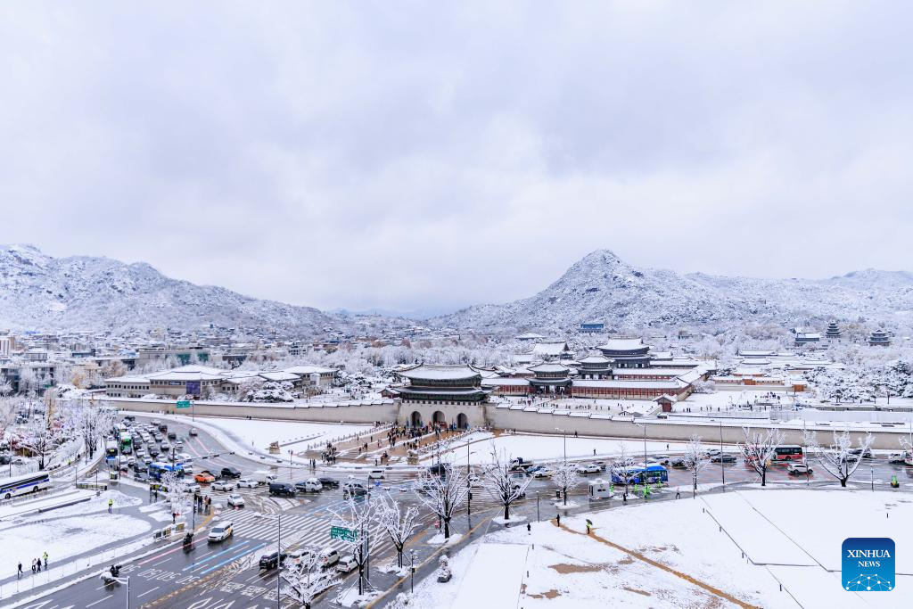 This photo taken on Nov. 27, 2024 shows a view of the city after snowfall in Seoul, South Korea. South Korea's capital city logged a record November snowfall, with more than 16 cm of snow blanketing Seoul, the weather service said Wednesday. (Photo by Park Jintaek/Xinhua)
