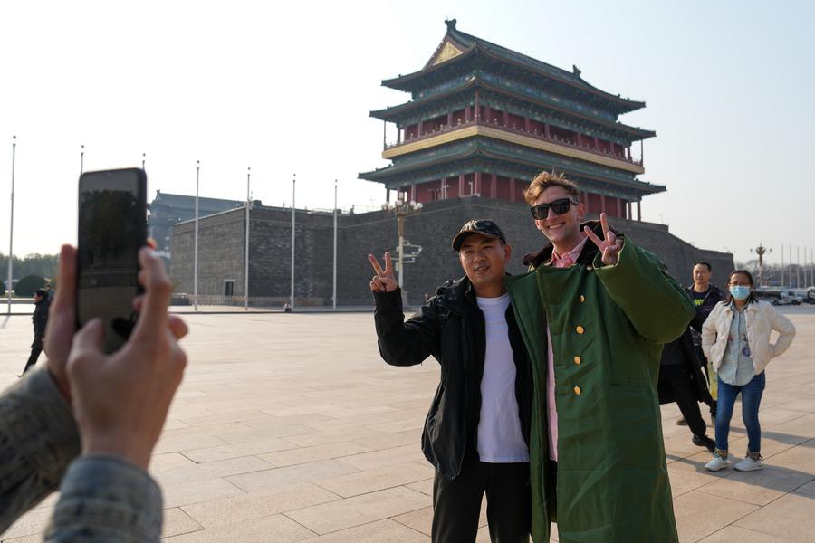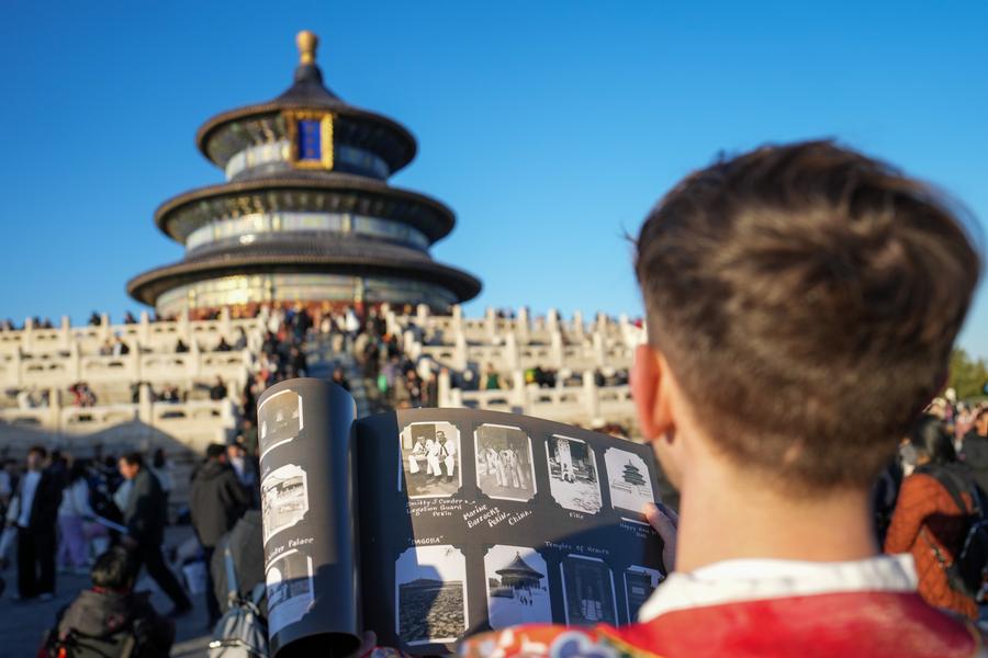 BEIJING, Nov. 28 (Xinhua) -- Standing in the park of the Temple of Heaven in central Beijing, Evan Kail from the United States opened a copy of a photo album, trying to figure out just how much things have changed over the past nearly 90 years.
