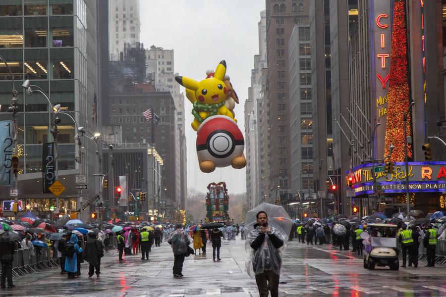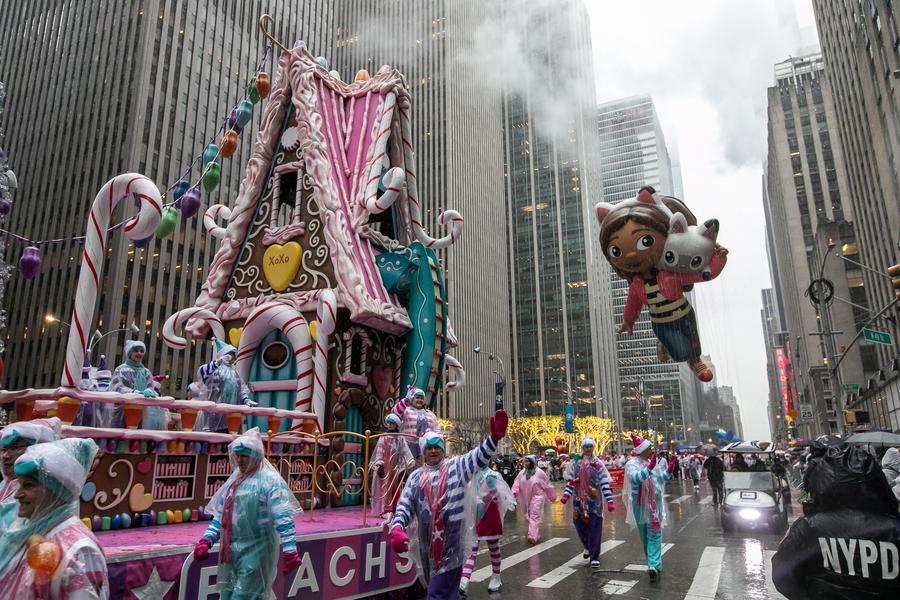 NEW YORK, Nov. 28 (Xinhua) -- The 98th Macy's Thanksgiving Day Parade drew a large number of New Yorkers and visitors from far away on Thursday morning despite continuous rainfall.