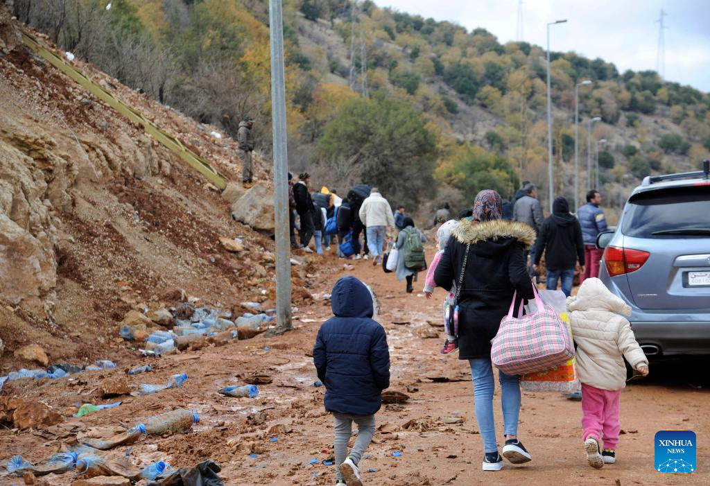 People walk across the Jdeidet Yabous border crossing between Syria and Lebanon on Nov. 27, 2024. (Photo by Ammar Safarjalani/Xinhua)