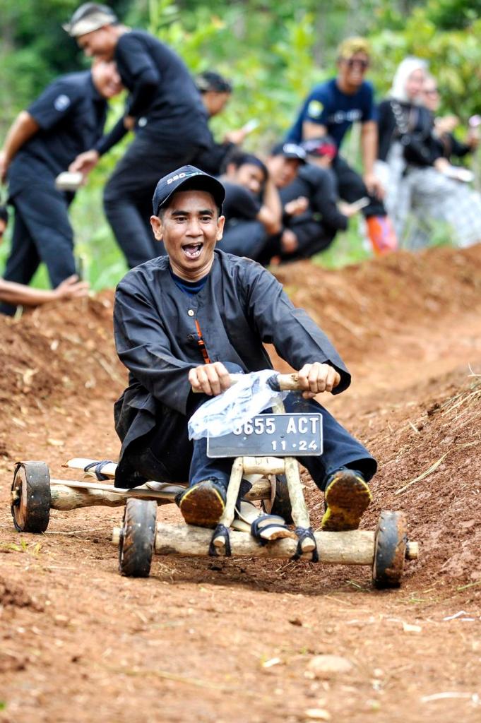 Driving the small wooden cart, locally known as kadaplak, the participants started on tracks with a slope of around 45 degrees from the top of a hill and slid down to the finish line.