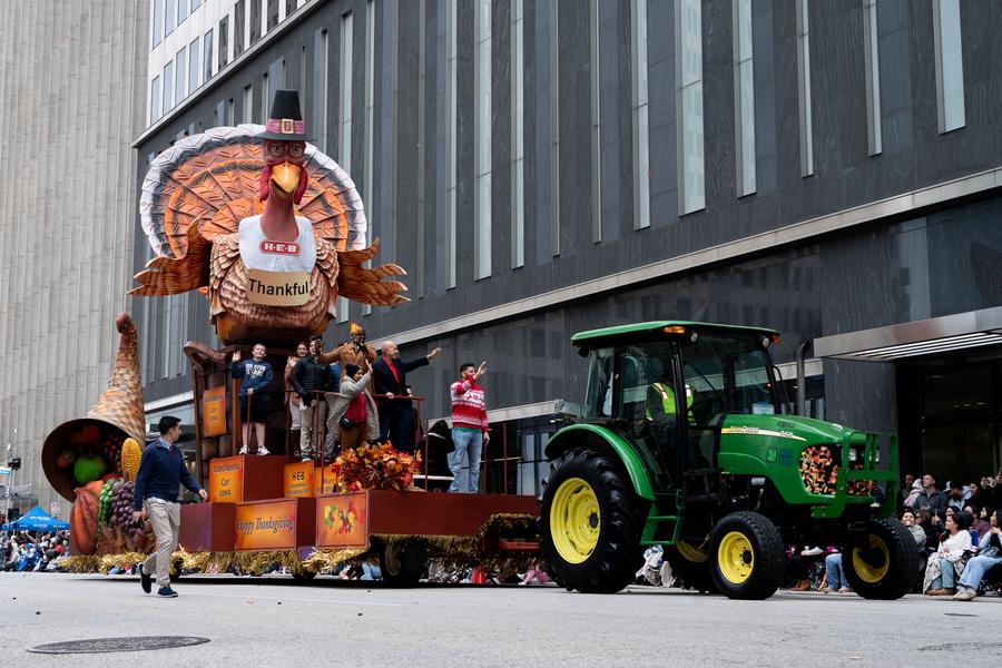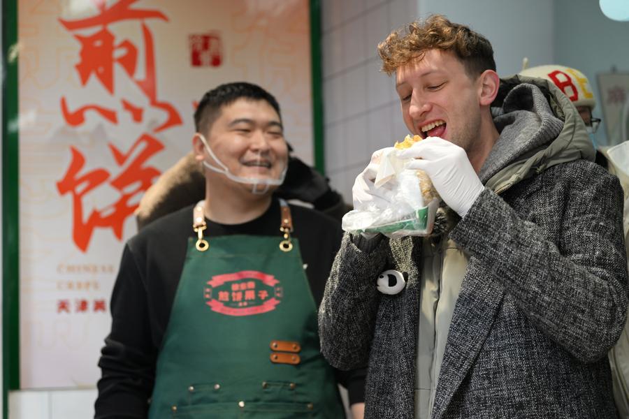 Soldiers escort coffins containing the remains of Chinese People's Volunteers (CPV) martyrs at the Taoxian international airport in Shenyang, northeast China's Liaoning Province, Nov. 28, 2024. The remains of 43 CPV soldiers who lost their lives during the War to Resist U.S. Aggression and Aid Korea (1950-1953) were returned to China on Thursday from the Republic of Korea (ROK). (Xinhua/Li Jie)Staff members perform cleaning work inside a convention and exhibition center as part of the second phase project of the China National Convention Center, in Beijing, capital of China, Nov. 28, 2024. (Xinhua/Zhang Chenlin)Artists perform at the Hungary Pavilion of the second China International Supply Chain Expo in Beijing, China, Nov. 28, 2024. This year's expo has Hungary as its guest country of honor. (Xinhua/Chen Zhonghao)An aerial drone photo shows a small boat frozen on the Songhua River in Harbin, northeast China's Heilongjiang Province, Nov. 28, 2024. (Photo by Zhang Shu/Xinhua)Evan Kail (R), a pawnshop manager from the United States, tries the local street food "Jianbing Guozi" in north China's Tianjin Municipality, Nov. 28, 2024. In 2022, Kail donated a photo album to China. The album features photos of Japanese atrocities in China during WWII. Two years after making this donation, Kail decided to embark on a month-long visit to China. (Xinhua/Li Ran)Competitors dance together after the awarding ceremony of ethnic aerobic dance event at the 12th National Traditional Games of Ethnic Minorities of China in Sanya, south China's Hainan Province, Nov. 28, 2024. (Xinhua/Sun Fanyue)A participant rides a traditional wooden cart, known locally as kadaplak, downhill at Cisurupan in Bandung, West Java Province, Indonesia, Nov. 28, 2024. (Photo by Septianjar Muharam/Xinhua)A turkey float is seen during the 75th H-E-B Thanksgiving Day Parade in Houston, Texas, the United States, Nov. 28, 2024. (Photo by Chen Chen/Xinhua)Hot-air balloons fly over Nevsehir, Türkiye, Nov. 28, 2024. (Mustafa Kaya/Handout via Xinhua)A destroyed house is seen in the town of Idna, west of Hebron, southern West Bank on Nov. 27, 2024, after the Israeli forces demolished it at dawn on the same day. (Photo by Mamoun Wazwaz/Xinhua)■