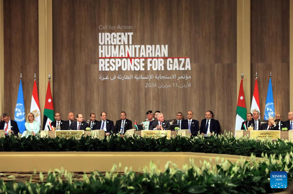 A conference titled "Call for Action: Urgent Humanitarian Response for Gaza" is held in Dead Sea, Jordan, on June 11, 2024.