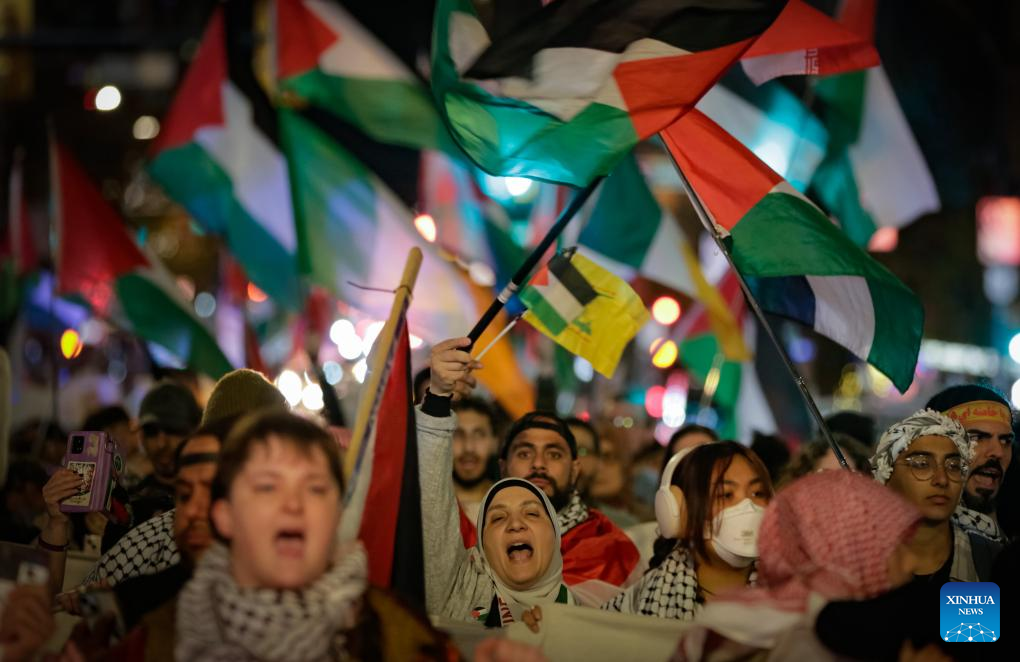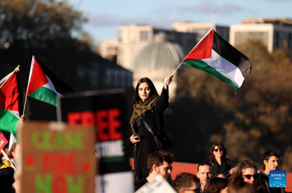 People take part in a pro-Palestinian rally in London, Britain, Nov. 11, 2023.