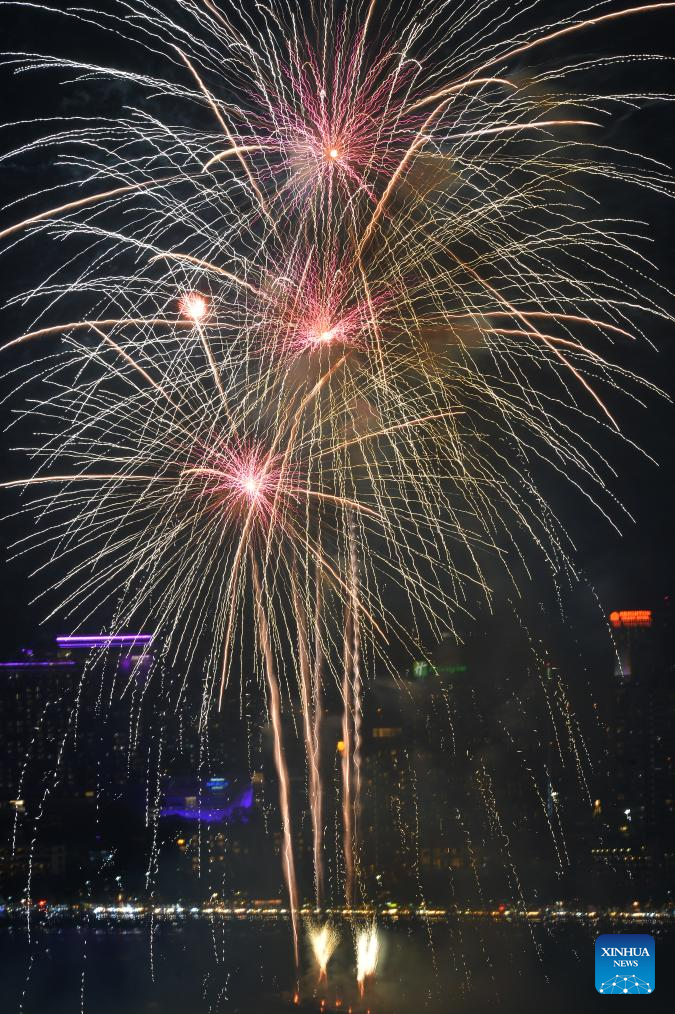 Fireworks explode in the sky during the Pattaya Fireworks Festival 2024 in Pattaya, Thailand, Nov. 29, 2024.
