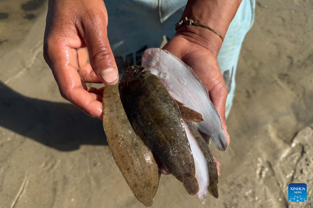 A fisherman shows fish caught from Lake Qarun in Fayoum province, Egypt, on Nov. 23, 2024. (Xinhua/Ahmed Gomaa)