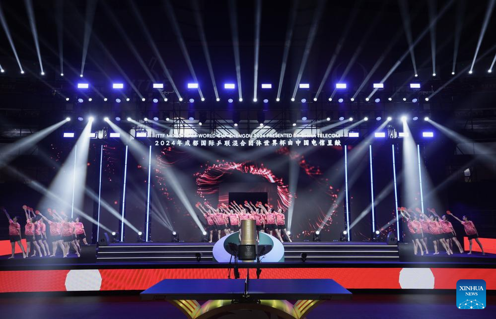 Photo taken on Dec. 1, 2024 shows a performance at the opening ceremony for the ITTF Mixed Team World Cup 2024 in Chengdu, southwest China's Sichuan Province. (Xinhua/Jiang Hongjing)