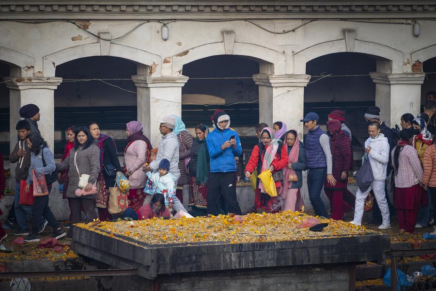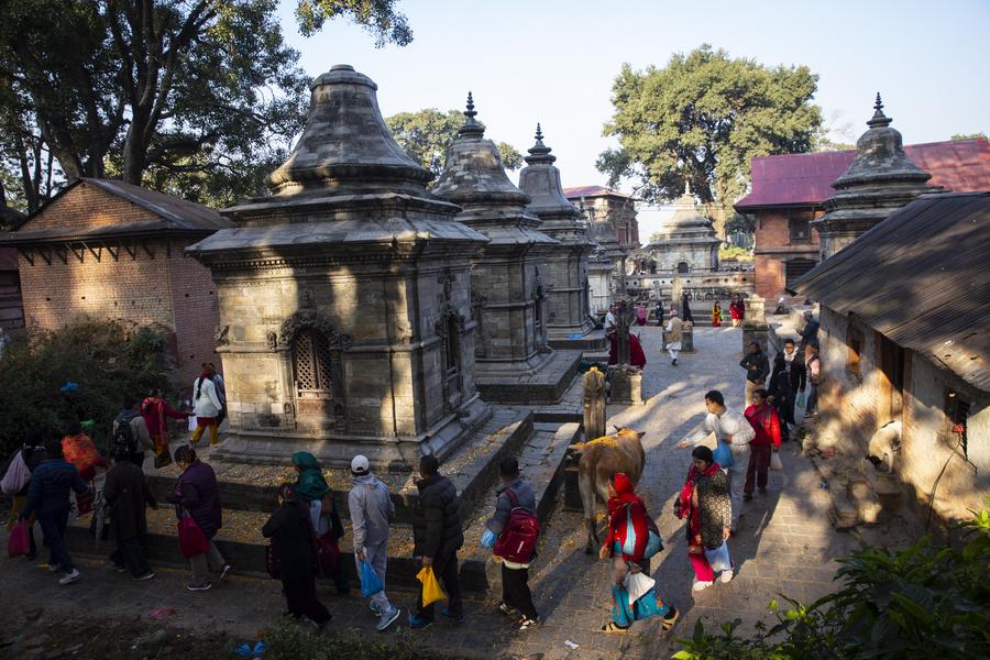 KATHMANDU, Dec. 1 (Xinhua) -- People observe the Bala Chaturdashi festival on the premises of Pashupatinath Temple in Kathmandu, Nepal.