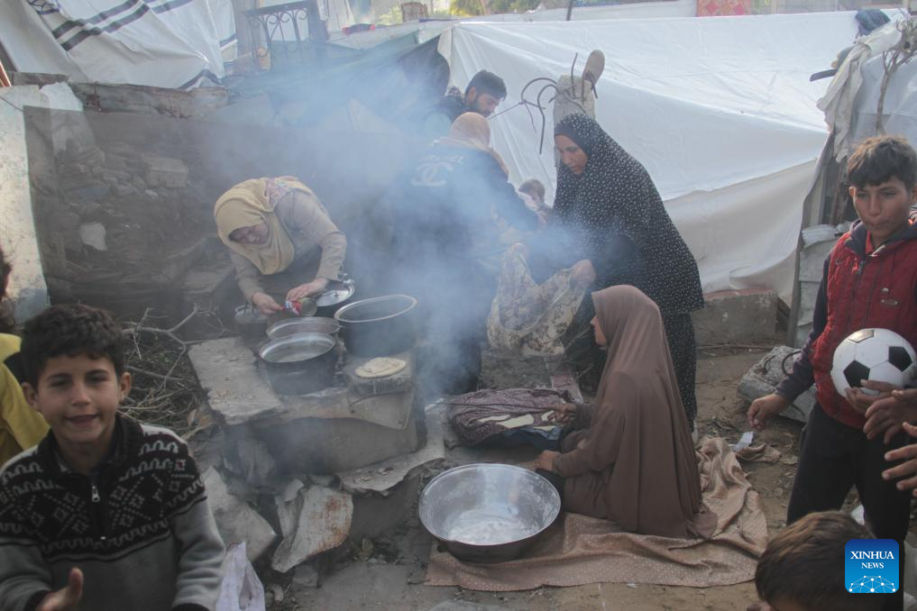 Displaced Palestinians are seen at a temporary shelter in Gaza City, on Dec. 1, 2024. (Photo by Mahmoud Zaki/Xinhua)