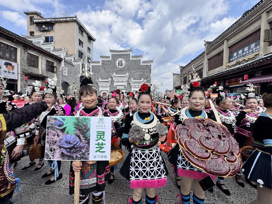 Yang Pingzhen, 63, joined a parade to showcase freshly harvested edible fungi. "I'm thrilled to present our Dong culture and Guizhou's unique specialties to tourists during this grand event. More than 30 people from my community are taking part in this parade, all dressed in our colorful ethnic costumes," Yang said proudly.