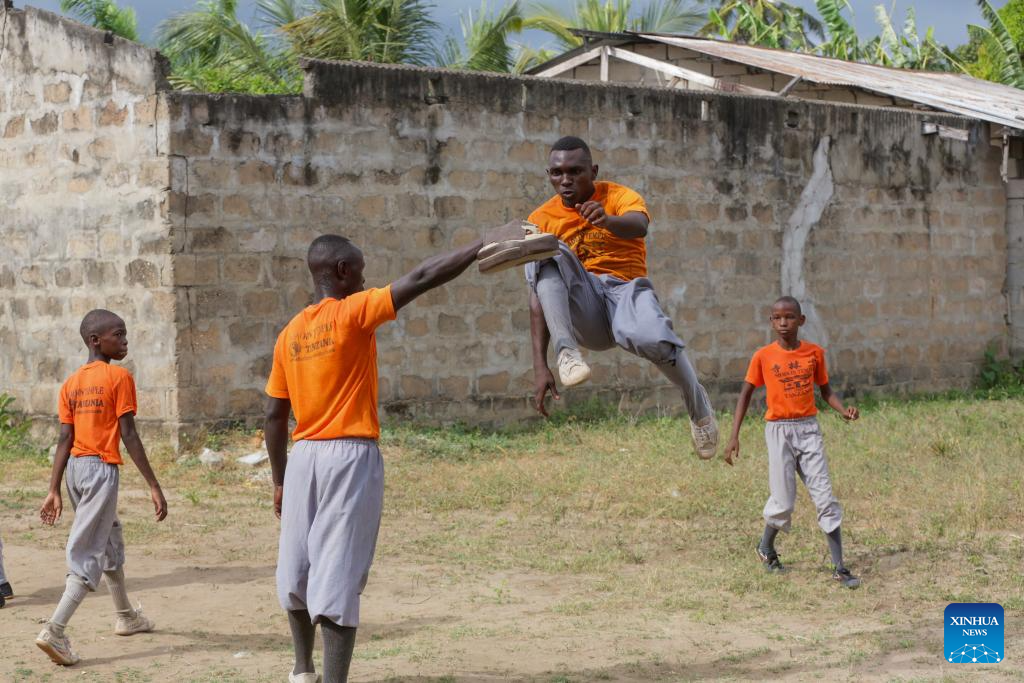 Tanzanian youths practise Chinese kung fu at the Shaolin Temple Tanzania Kung Fu Club in Dar es Salaam, Tanzania, on Nov. 30, 2024.(Xinhua/Emmanuel Herman)