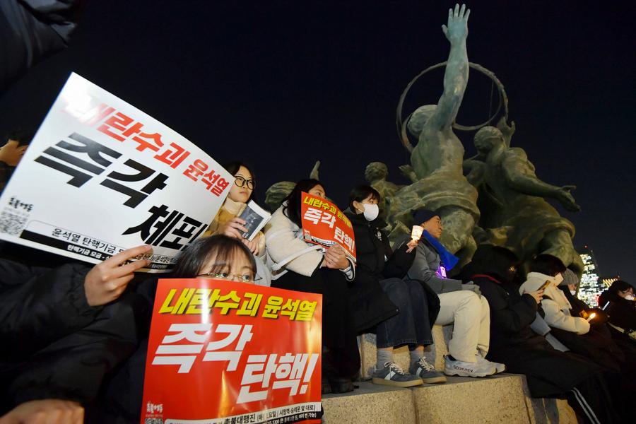 SEOUL, Dec. 5 (Xinhua) -- South Korea's main opposition Democratic Party of Korea said Thursday that it will push for a vote Saturday for an impeachment motion against President Yoon Suk-yeol over his shocking yet short-lived imposition of martial law.