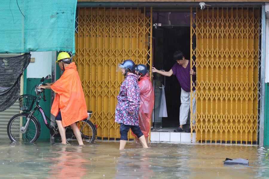 People walk in flood water in Yala Province, Thailand, Nov. 27, 2024. (Xinhua)
