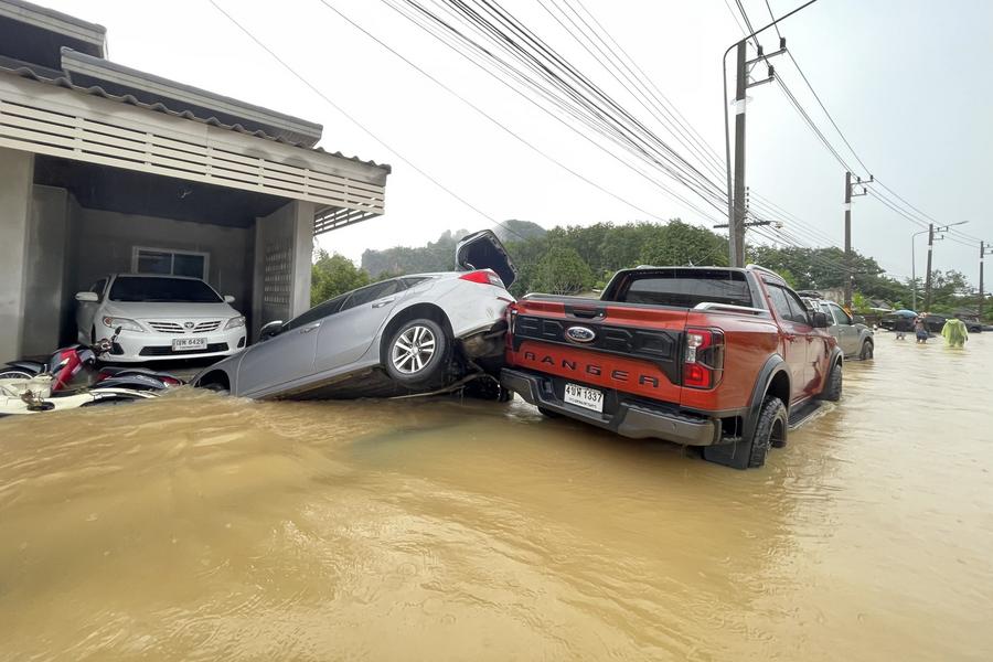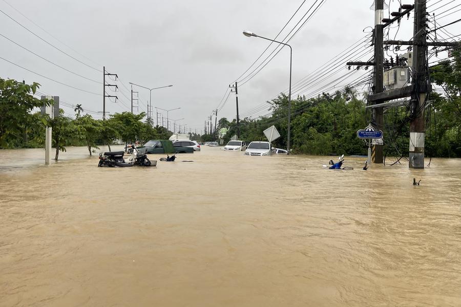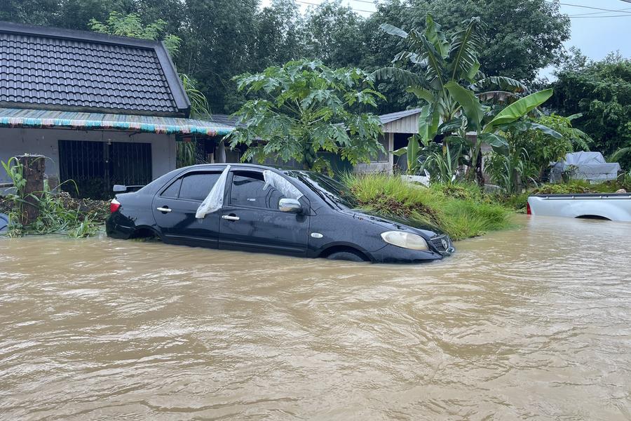 An aerial drone photo taken on Nov. 30, 2024 shows a flood-affected area in Yala Province, Thailand. (Xinhua)People walk in flood water in Yala Province, Thailand, Nov. 27, 2024. (Xinhua)A car soaked in flood water is seen in Yala Province, Thailand, Dec. 3, 2024. (Xinhua)Cars soaked in flood water are seen in Yala Province, Thailand, Dec. 3, 2024. (Xinhua)A flooded road is seen in Yala Province, Thailand, Dec. 3, 2024. (Xinhua)■