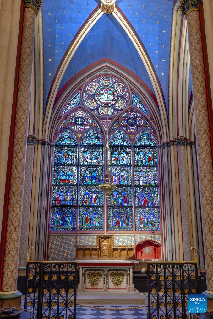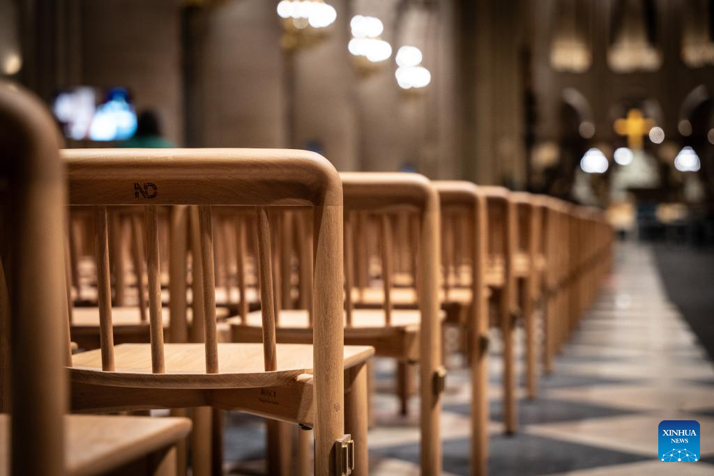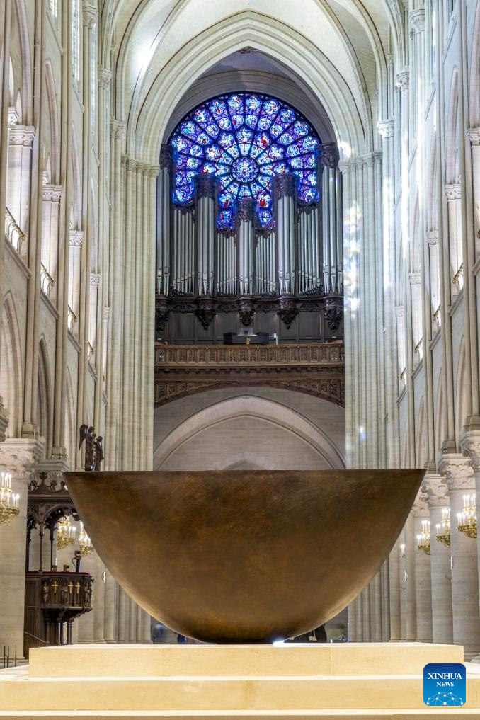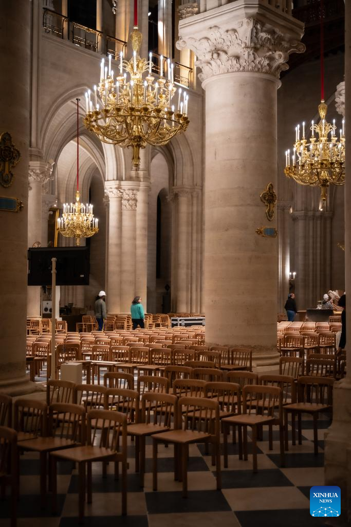 This photo shows the interior view of Notre-Dame Cathedral before its reopening in Paris, France, Nov. 30, 2024.