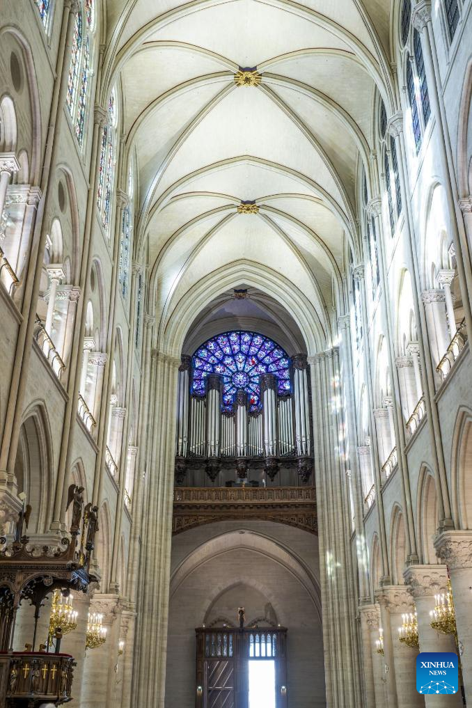 The reopening ceremonies of the Notre-Dame Cathedral, which was damaged by a huge fire in 2019, will be held on Dec. 7 and 8. (Notre Dame de Paris/Handout via Xinhua)