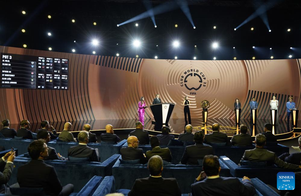 Photo taken on Dec. 5, 2024 shows the draw ceremony for the FIFA Club World Cup 2025 in Miami, the United States. (Xinhua/Wu Xiaoling)