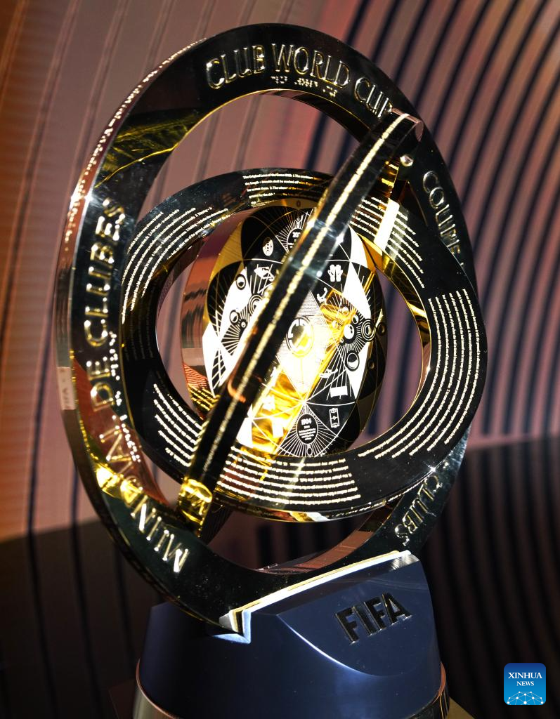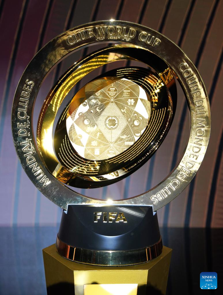 The trophy of the FIFA Club World Cup 2025 is seen during the draw ceremony for the FIFA Club World Cup 2025 in Miami, the United States, on Dec. 5, 2024. (Xinhua/Wu Xiaoling)