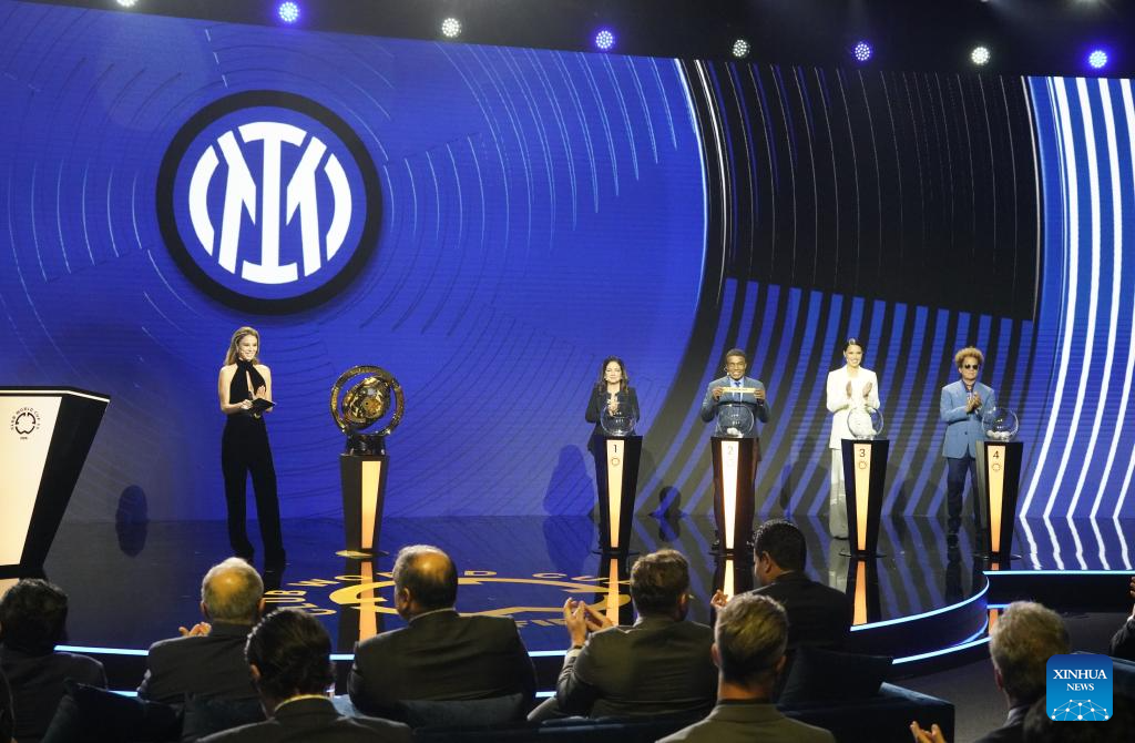 The draw slip of Inter Milan is shown during the draw ceremony for the FIFA Club World Cup 2025 in Miami, the United States, on Dec. 5, 2024. (Xinhua/Wu Xiaoling)