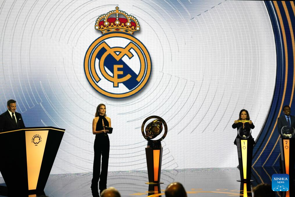 The draw slip of Real Madrid is shown during the draw ceremony for the FIFA Club World Cup 2025 in Miami, the United States, on Dec. 5, 2024. (Xinhua/Wu Xiaoling)