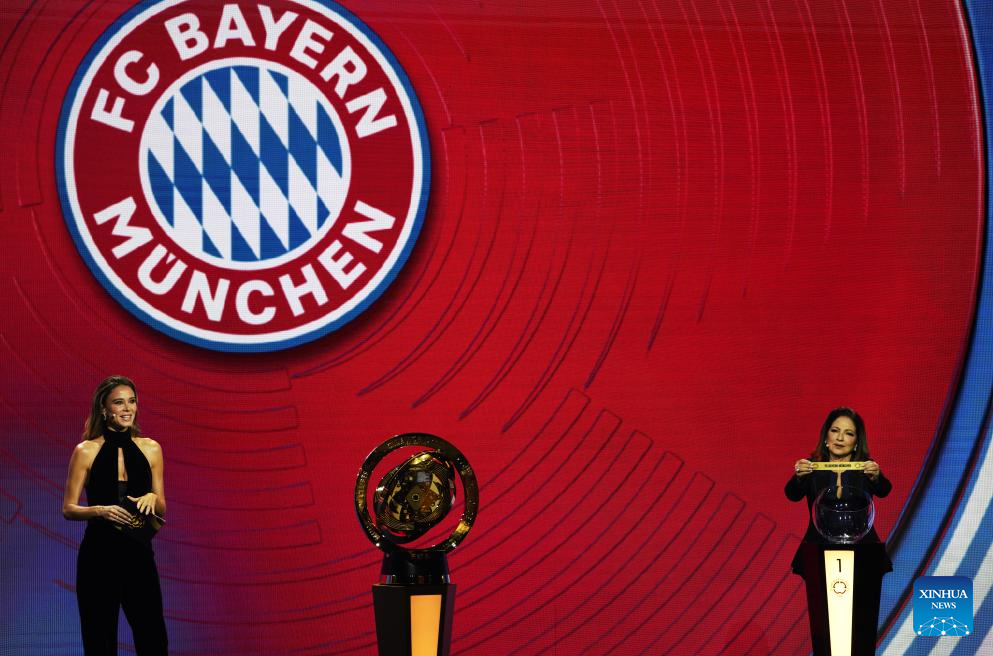 The draw slip of Bayern Munich is shown during the draw ceremony for the FIFA Club World Cup 2025 in Miami, the United States, on Dec. 5, 2024. (Xinhua/Wu Xiaoling)