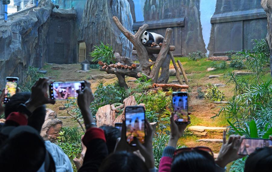 Visitors take pictures of a giant panda at Ocean Park Hong Kong in Hong Kong, south China, Dec. 8, 2024. Giant pandas "An An" and "Ke Ke" gifted by the central government to the Hong Kong Special Administrative Region (HKSAR) made their public debut at Ocean Park Hong Kong on Dec. 8. (Xinhua/Chen Duo)This photo shows a view of the Starlight Night Market in Jinghong City of Xishuangbanna Dai Autonomous Prefecture, southwest China's Yunnan Province, Dec. 7, 2024. The night market is a destination to experience the customs of Dai ethnic group. (Xinhua/Hu Chao)Dong Ruijing, an intangible heritage inheritor, makes a Filigree Mosaic artwork at his studio in Beijing, capital of China, Dec. 3, 2024. Filigree Mosaic art, a traditional imperial handicraft dating back to the Spring and Autumn period (770 B.C.-476 B.C.), reached its peak in the Ming and Qing dynasties (1368-1911). In 1958, five cooperatives specialized in Filigree Mosaic art in Beijing merged into one factory, which had revived this traditional art from almost extinction. In 2008, Filigree Mosaic art was listed as a national-level intangible cultural heritage. (Xinhua/Zhu Weixi)A drone photo taken on Dec. 7, 2024 shows a view of the Huangmao Sea Channel Bridge in south China's Guangdong Province. The bridge is scheduled to open to traffic in December. (Xinhua/Cai Yang)An international expert attending the Hualongdong site academic conference visits the exhibition hall of the Hualongdong site in Dongzhi County of Chizhou City, east China's Anhui Province, Dec. 6, 2024. Chinese scientists have discovered dozens of human fossils at the Hualongdong site dating back 300,000 years, which are the earliest ones found in East Asia in terms of the evolution process towards Homo sapiens, the species to which all modern human beings belong. (Xinhua/Zhou Mu)Team China pose on the podium during the awarding ceremony after the final match between China and South Korea at the ITTF Mixed Team World Cup 2024 in Chengdu, southwest China's Sichuan Province, Dec. 8, 2024. (Xinhua/Wang Xi)Wu Shaotong of China competes during the women's halfpipe final at FIS Snowboard World Cup 2025 in Zhangjiakou, north China's Hebei Province, Dec. 8, 2024. (Xinhua/Luo Yuan)People enjoy themselves at a skating rink in St. Petersburg, Russia, Dec. 7, 2024. (Photo by Irina Motina/Xinhua)People gather outside the restored Notre-Dame de Paris cathedral in the rain in Paris, France, Dec. 7, 2024. Five years after being devastated by a fire, the restored Notre-Dame de Paris cathedral officially reopened on Dec. 7 with a grand inauguration ceremony attended by world leaders, believers, and non-believers alike. (Photo by Julien Mattia/Xinhua)■
