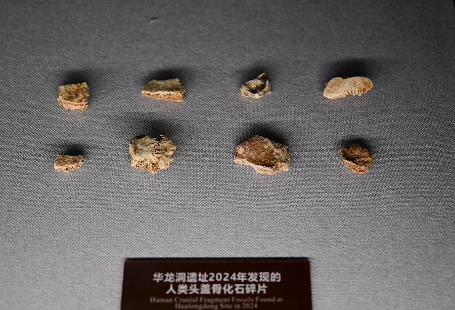 This photo taken on Dec. 6, 2024 shows stone artifacts displayed at the exhibition hall of Hualongdong site in Dongzhi County of Chizhou City, east China's Anhui Province. (Xinhua/Zhou Mu)A drone photo taken on Dec. 6, 2024 shows people visiting the Hualongdong site in Dongzhi County of Chizhou City, east China's Anhui Province. (Xinhua/Zhou Mu)This photo taken on Dec. 6, 2024 shows human skull fossil fragments displayed at the exhibition hall of Hualongdong site in Dongzhi County of Chizhou City, east China's Anhui Province. (Xinhua/Zhou Mu)A visitor takes pictures of an item displayed at the exhibition hall of Hualongdong site in Dongzhi County of Chizhou City, east China's Anhui Province, Dec. 6, 2024. (Xinhua/Zhou Mu)Wu Xiujie (1st L, front), a researcher at the Institute of Vertebrate Paleontology and Paleoanthropology of the Chinese Academy of Sciences, introduces Hualongdong site to visitors at the site in Dongzhi County of Chizhou City, east China's Anhui Province, Dec. 6, 2024. (Xinhua/Zhou Mu)People visit the Hualongdong site in Dongzhi County of Chizhou City, east China's Anhui Province, Dec. 6, 2024. (Xinhua/Zhou Mu)This photo taken on Dec. 6, 2024 shows a view of the Hualongdong site in Dongzhi County of Chizhou City, east China's Anhui Province. (Xinhua/Zhou Mu)Experts attending the Hualongdong site academic conference visit the exhibition hall of the Hualongdong site in Dongzhi County of Chizhou City, east China's Anhui Province, Dec. 6, 2024. (Xinhua/Zhou Mu)International experts attending the Hualongdong site academic conference visit the exhibition hall of the Hualongdong site in Dongzhi County of Chizhou City, east China's Anhui Province, Dec. 6, 2024. (Xinhua/Zhou Mu)People visit the Hualongdong site in Dongzhi County of Chizhou City, east China's Anhui Province, Dec. 6, 2024. (Xinhua/Zhou Mu)An international expert attending the Hualongdong site academic conference visits the exhibition hall of the Hualongdong site in Dongzhi County of Chizhou City, east China's Anhui Province, Dec. 6, 2024. (Xinhua/Zhou Mu)A drone photo taken on Dec. 6, 2024 shows people visiting the Hualongdong site in Dongzhi County of Chizhou City, east China's Anhui Province. (Xinhua/Zhou Mu)■