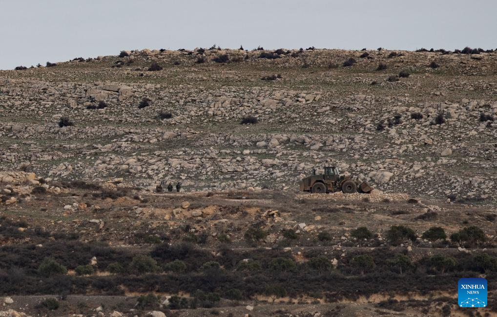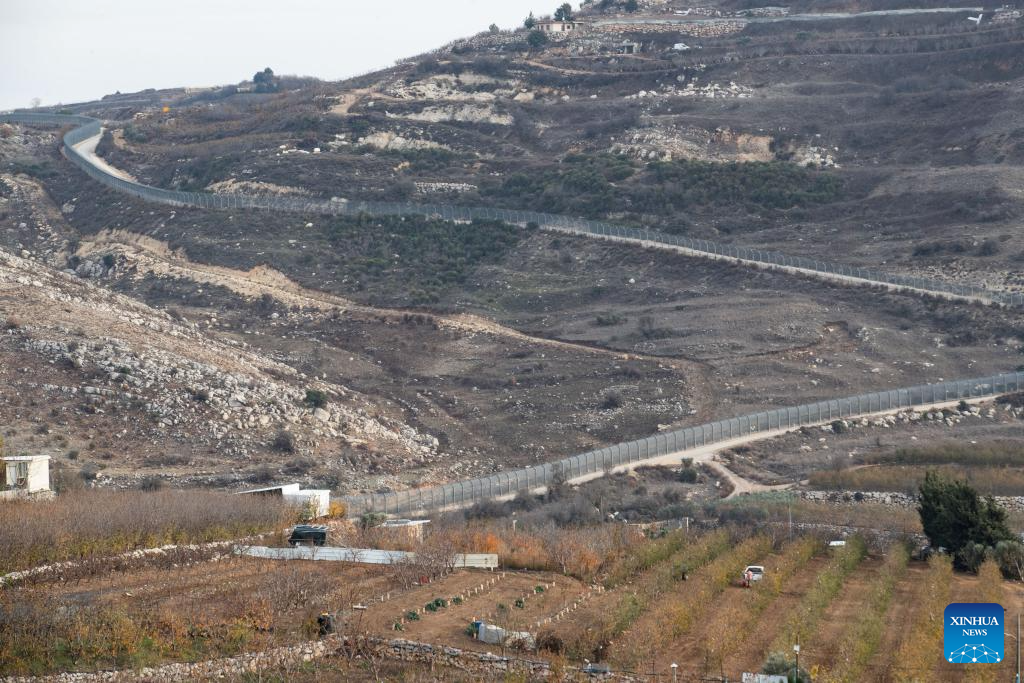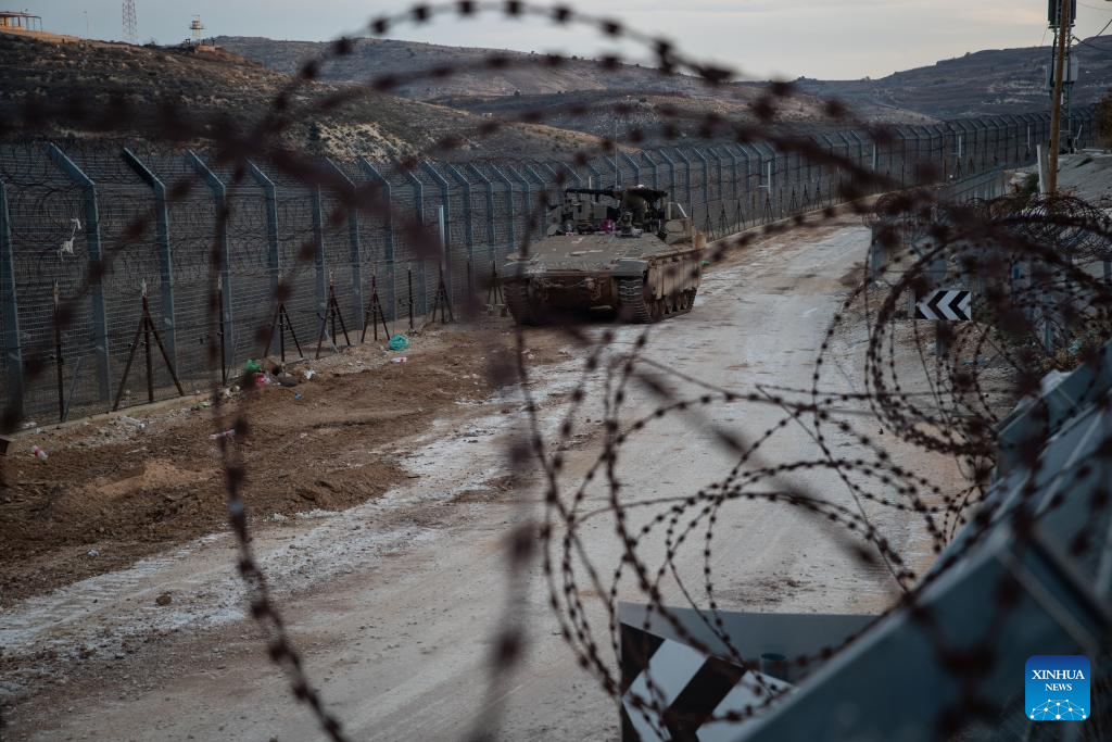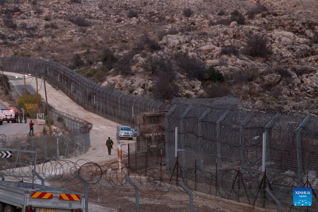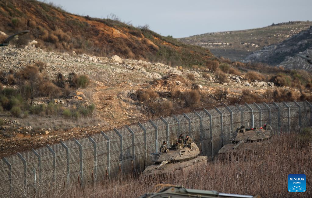 Israeli troops are seen near the buffer zone fence on the eastern side of the Golan Heights, on Dec. 10, 2024. (Xinhua/Chen Junqing)