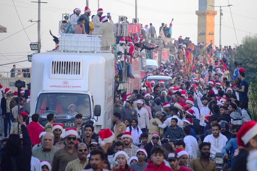 KARACHI, Pakistan, Dec. 10 (Xinhua) -- People attended a Christmas celebration rally in the southern Pakistani port city of Karachi recently.