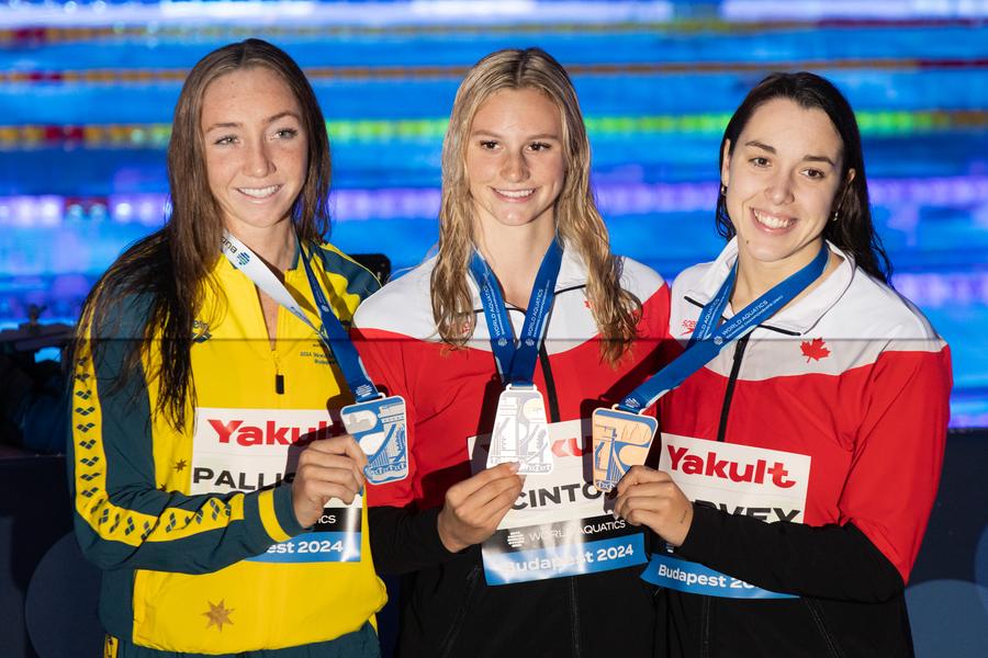 Canada's Olympic champion Summer McIntosh claimed the women's 400m freestyle gold with a world record of 3:50.25.