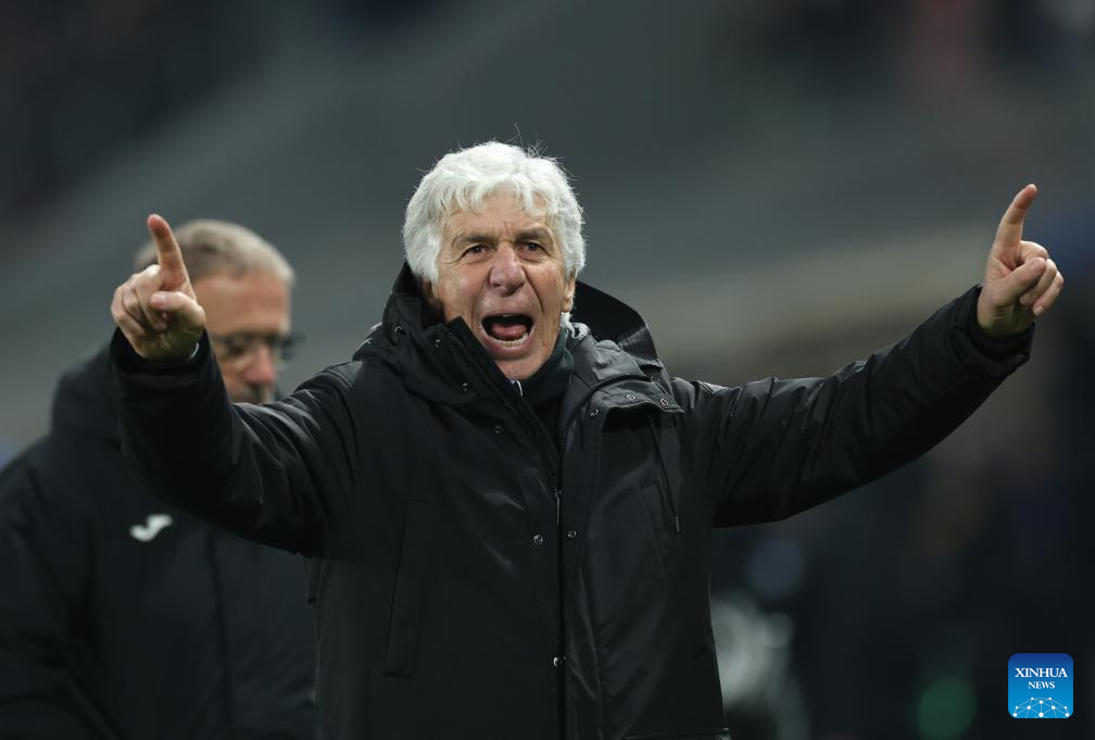 Atalanta's head coach Gian Piero Gasperini reacts before the UEFA Champions League match between Atalanta and Real Madrid in Bergamo, Italy, Dec. 10, 2024. (Xinhua/Li Jing)