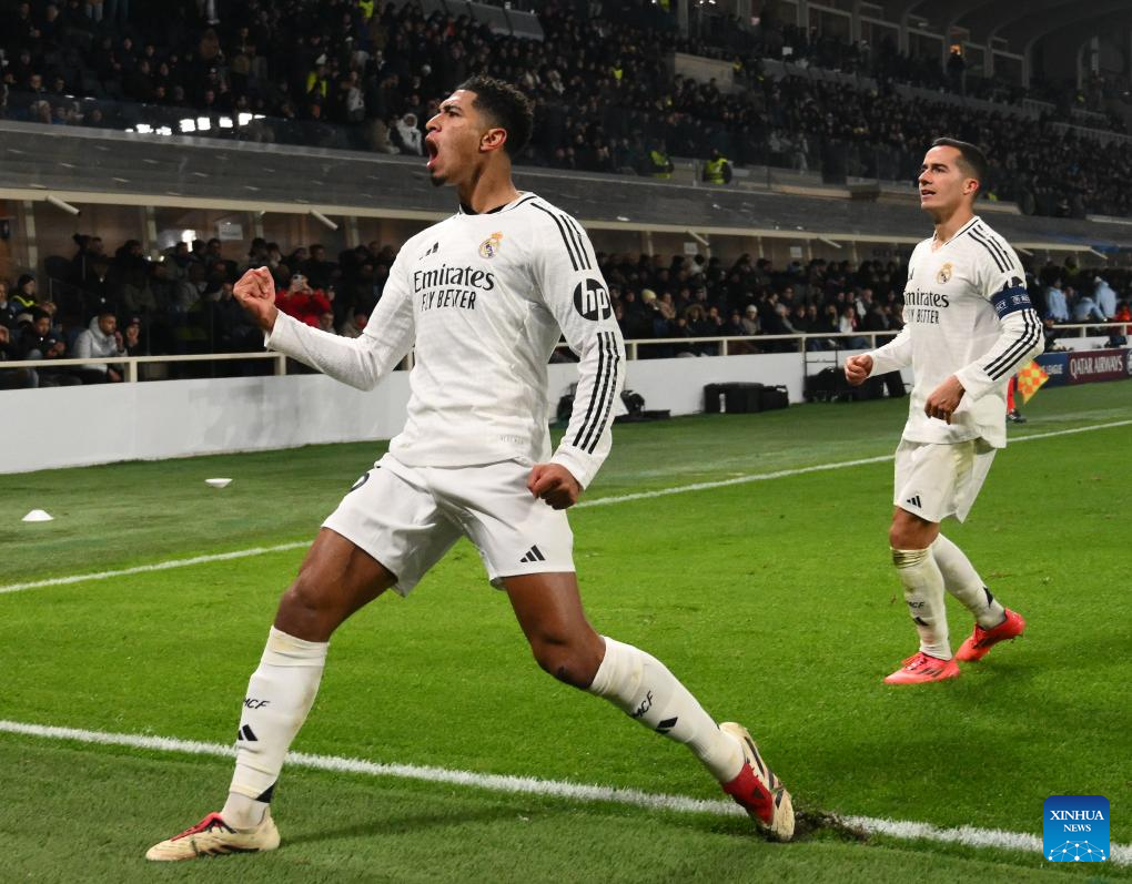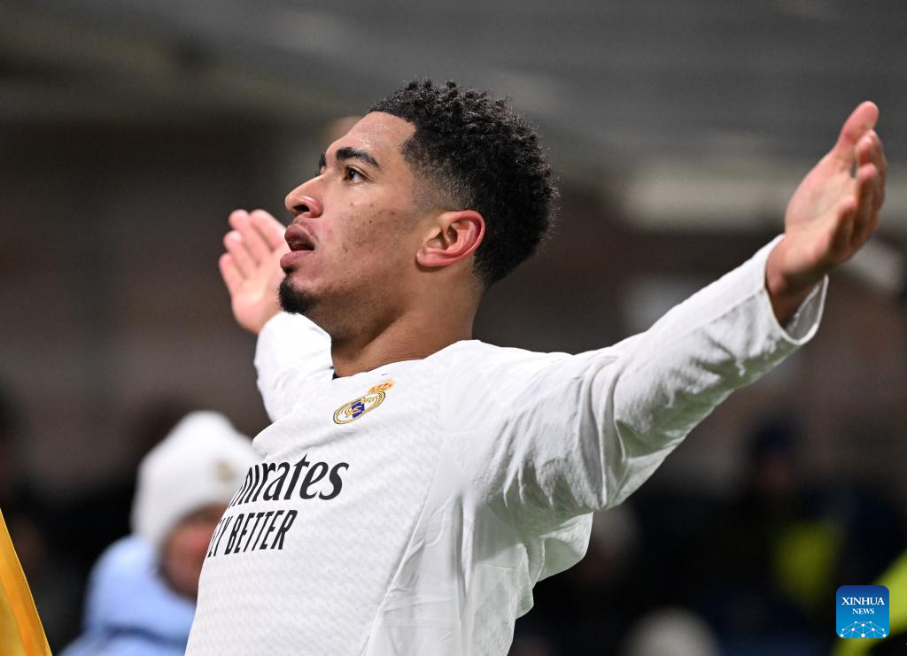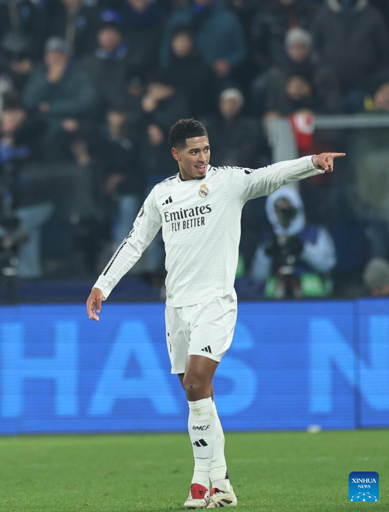 Real Madrid's Jude Bellingham celebrates his goal during the UEFA Champions League match between Atalanta and Real Madrid in Bergamo, Italy, Dec. 10, 2024. (Xinhua/Li Jing)