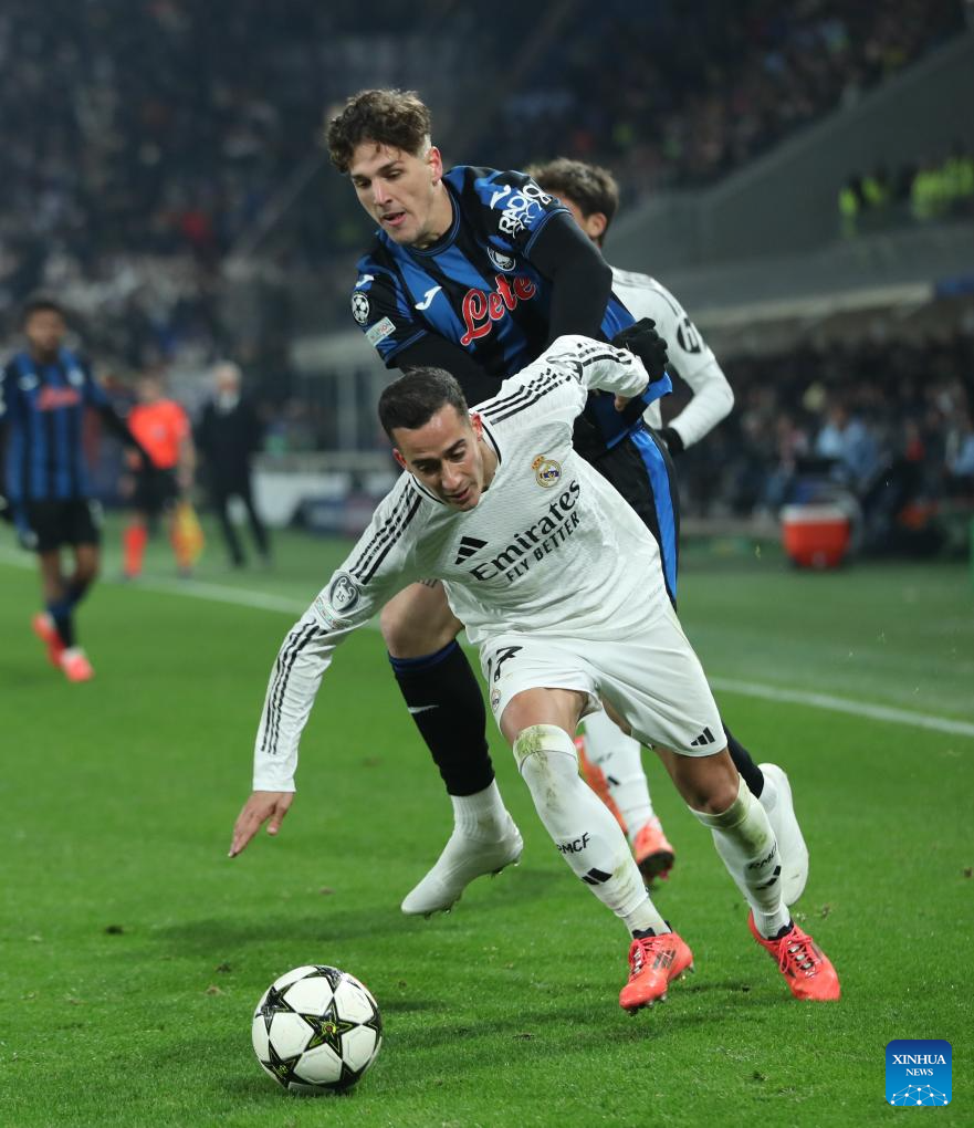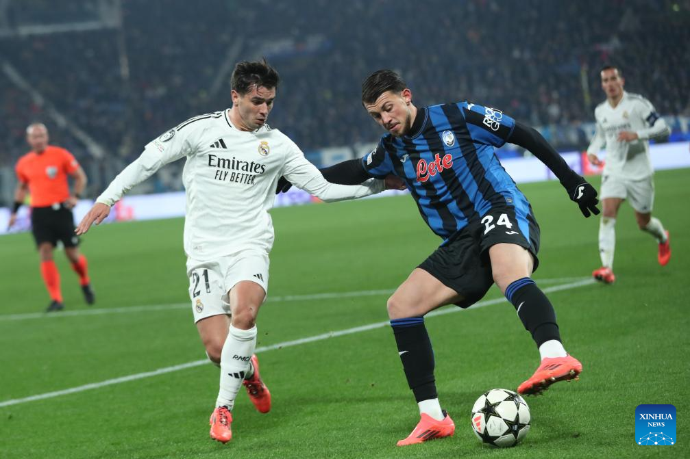 Atalanta's Lazar Samardzic (R) vies with Real Madrid's Brahim Diaz during the UEFA Champions League match between Atalanta and Real Madrid in Bergamo, Italy, Dec. 10, 2024. (Xinhua/Li Jing)