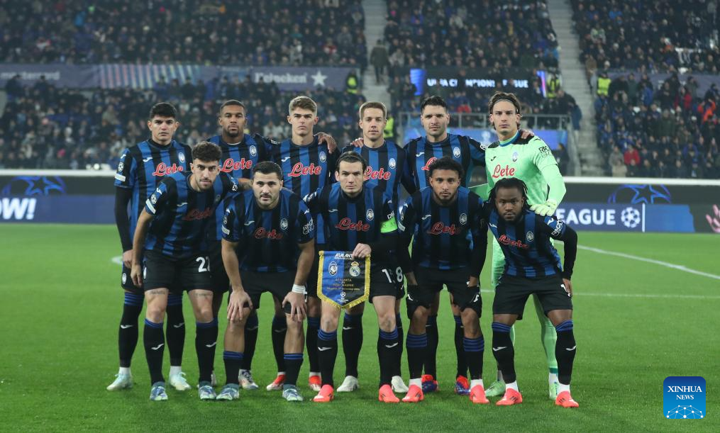 Atalanta's starting players pose for a photo before the UEFA Champions League match between Atalanta and Real Madrid in Bergamo, Italy, Dec. 10, 2024. (Xinhua/Li Jing)